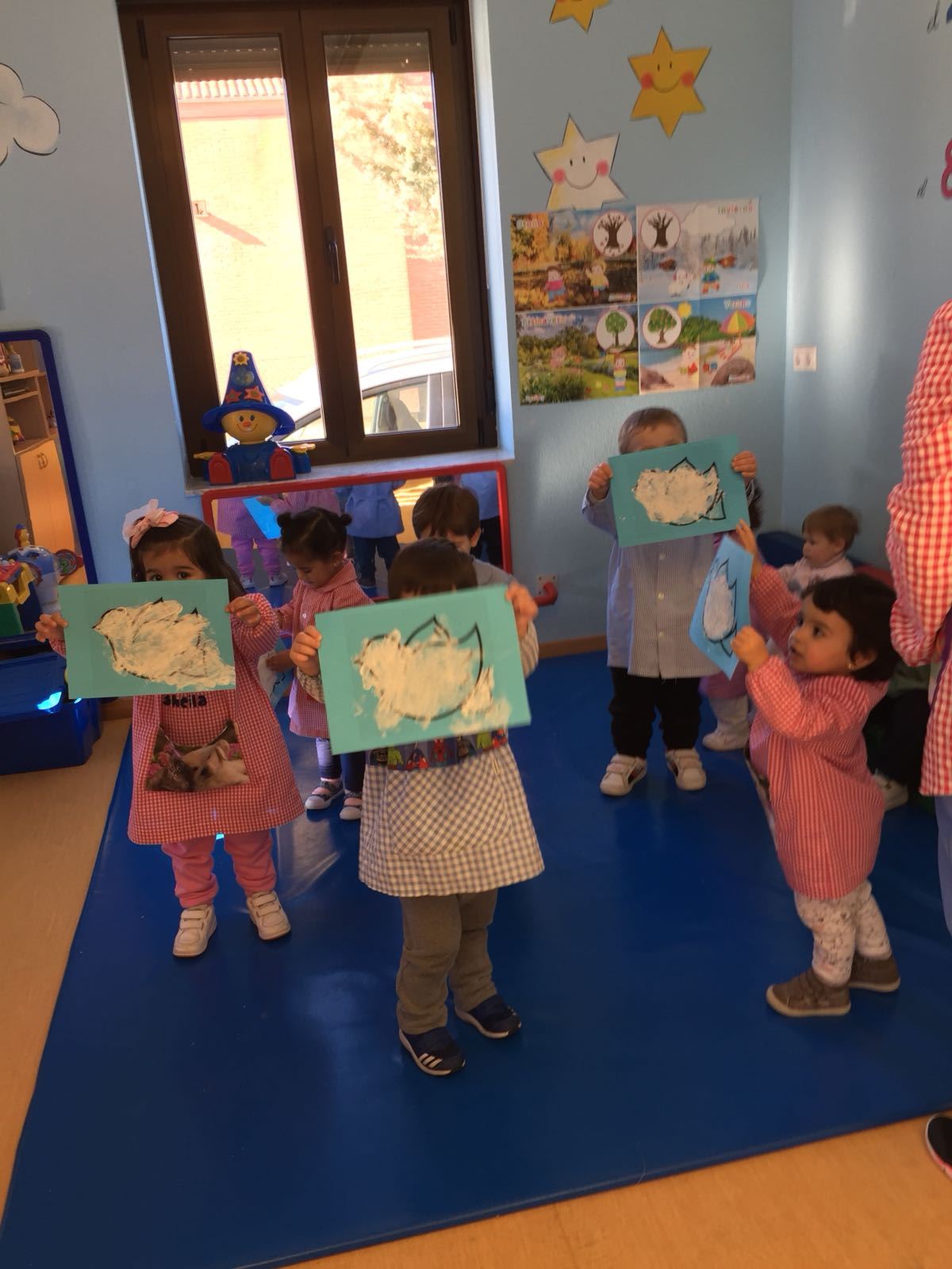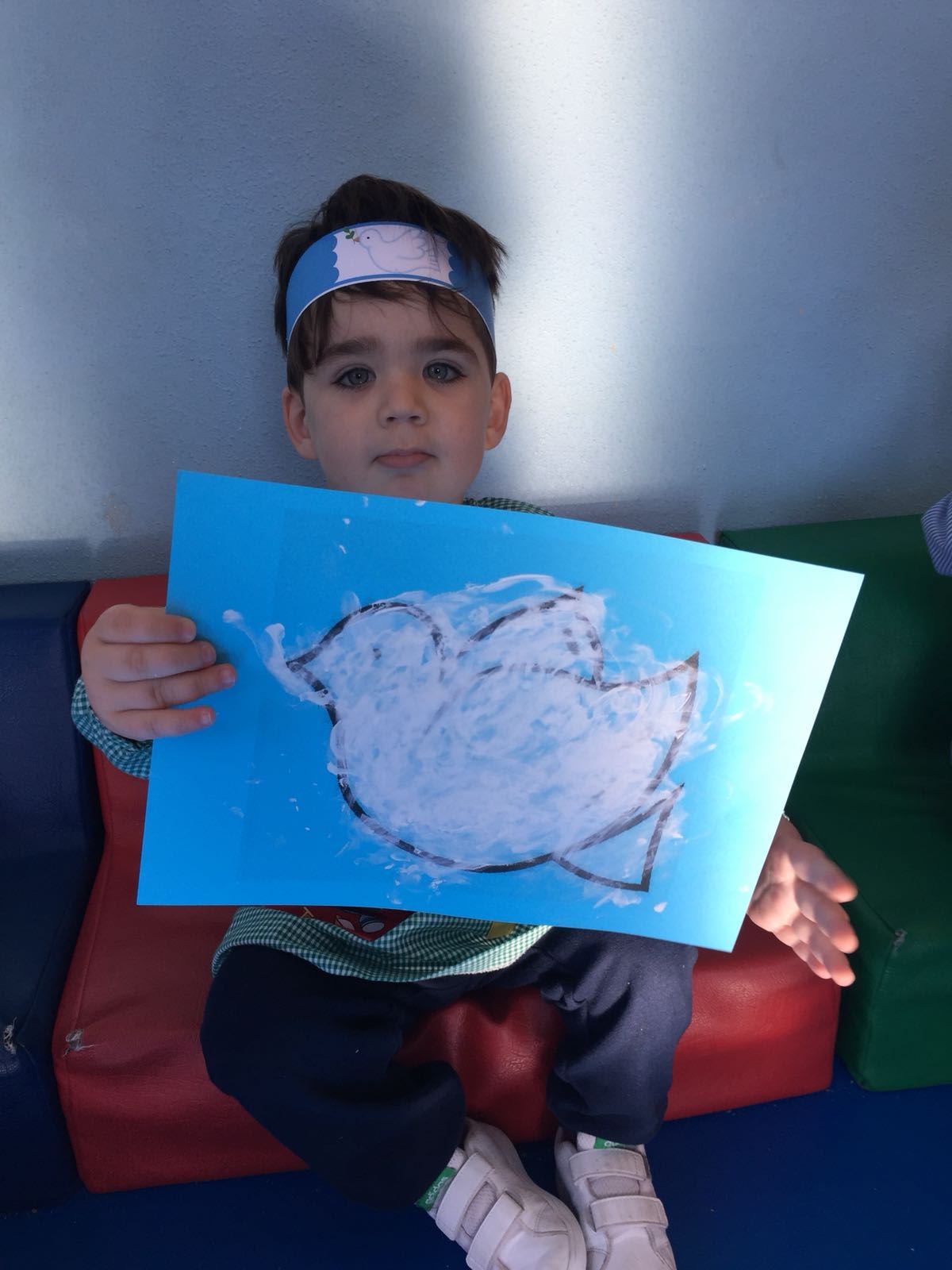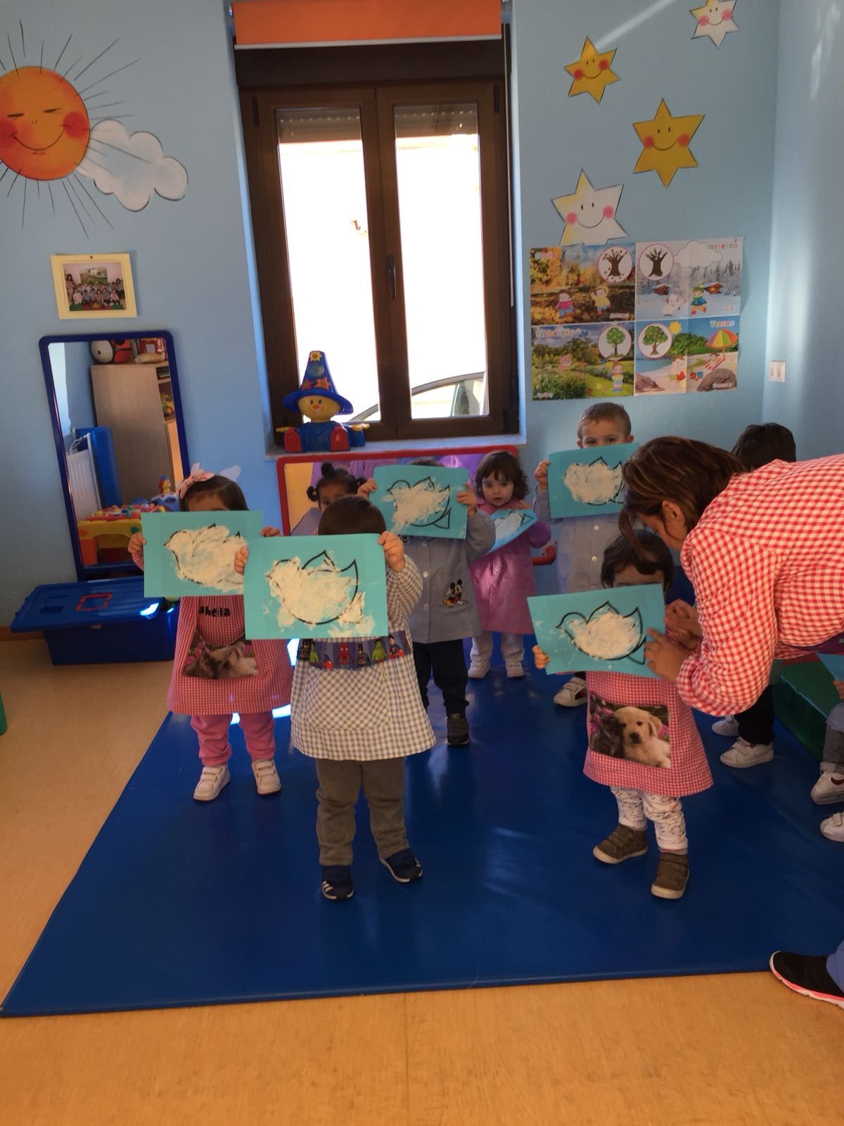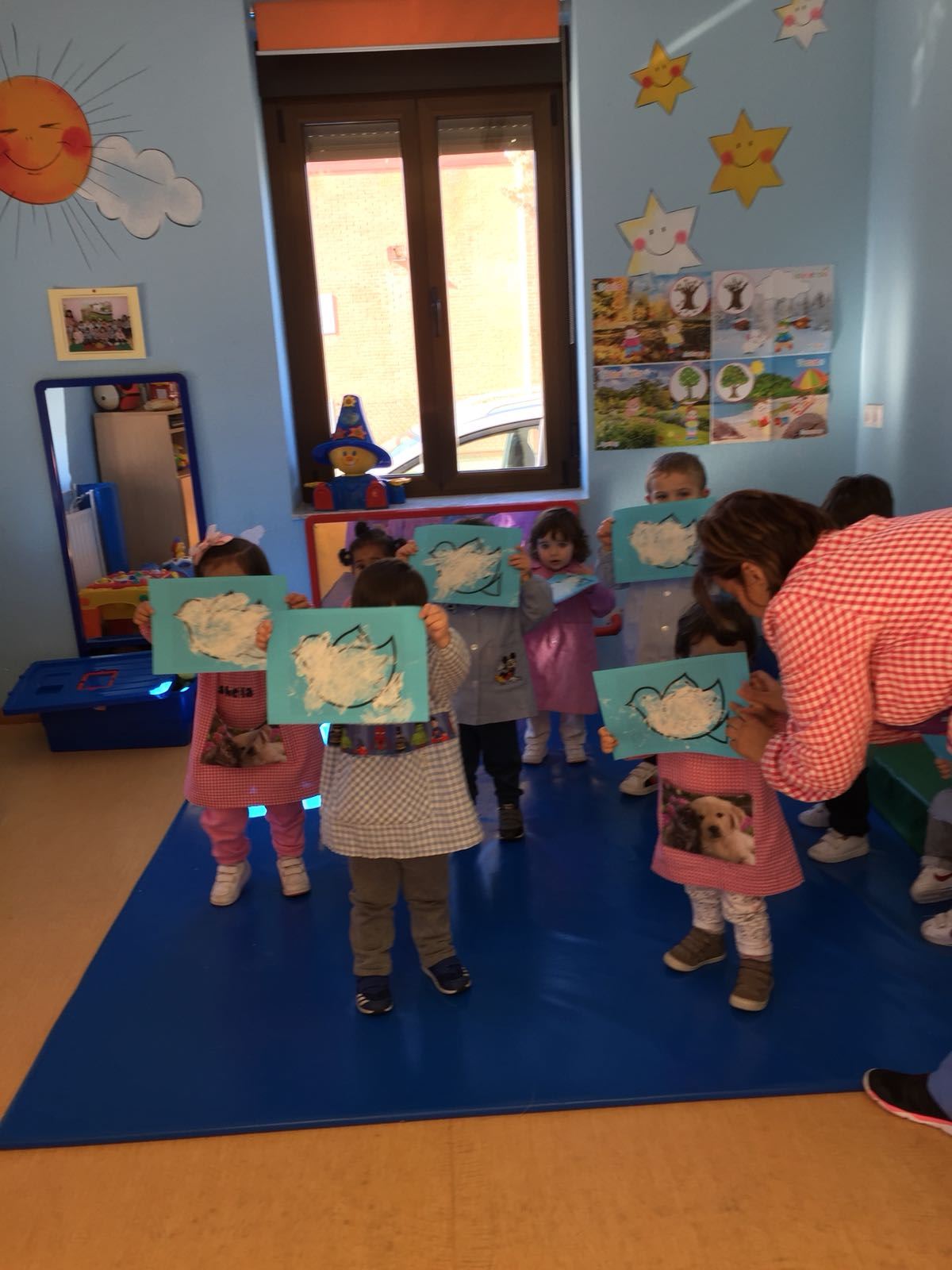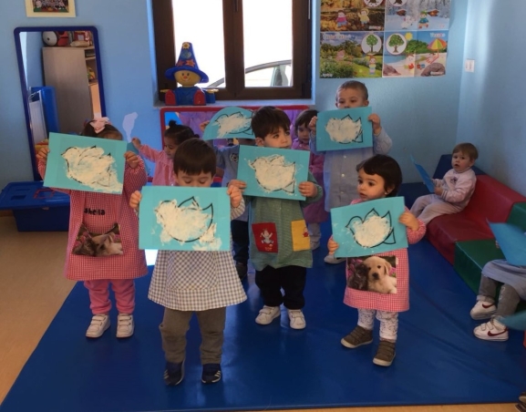 a guardería de Villoria se han sumado a la celebración pintando palomas blancas.