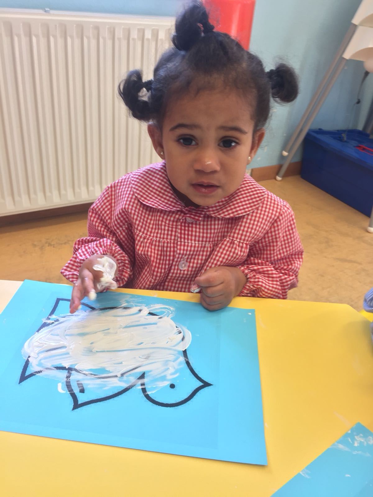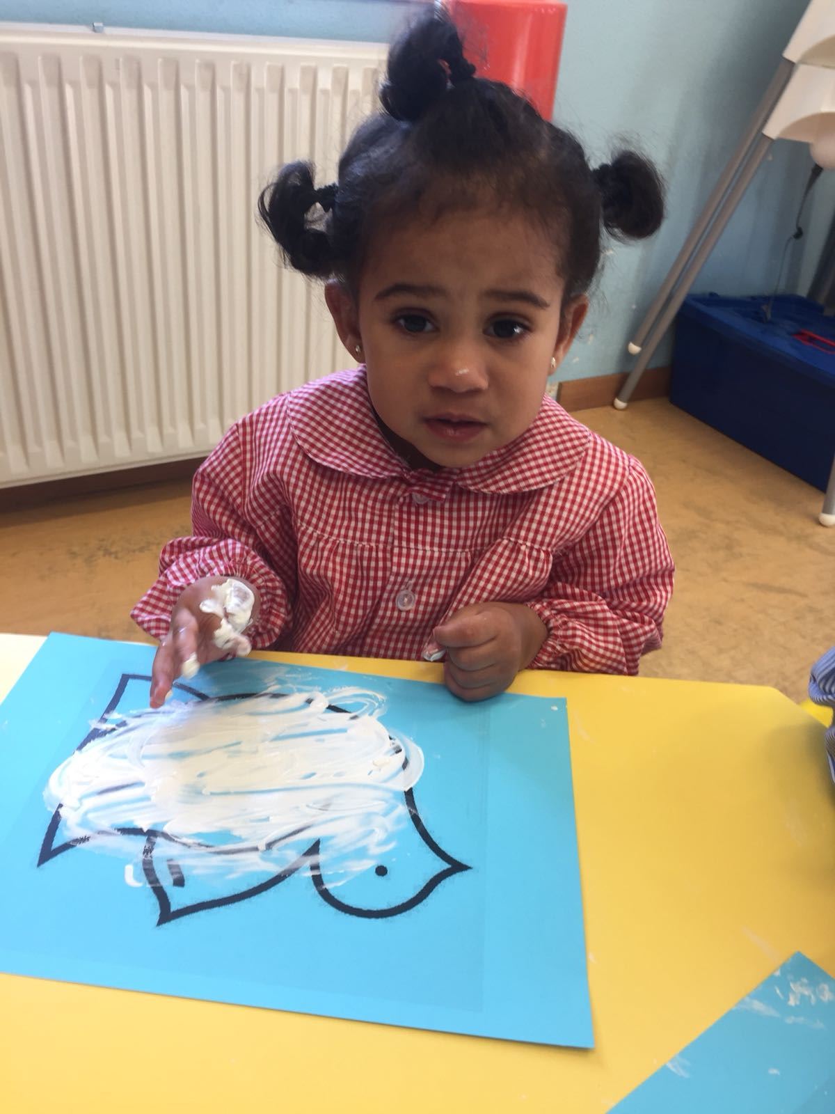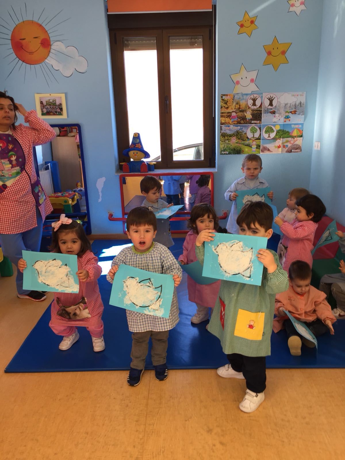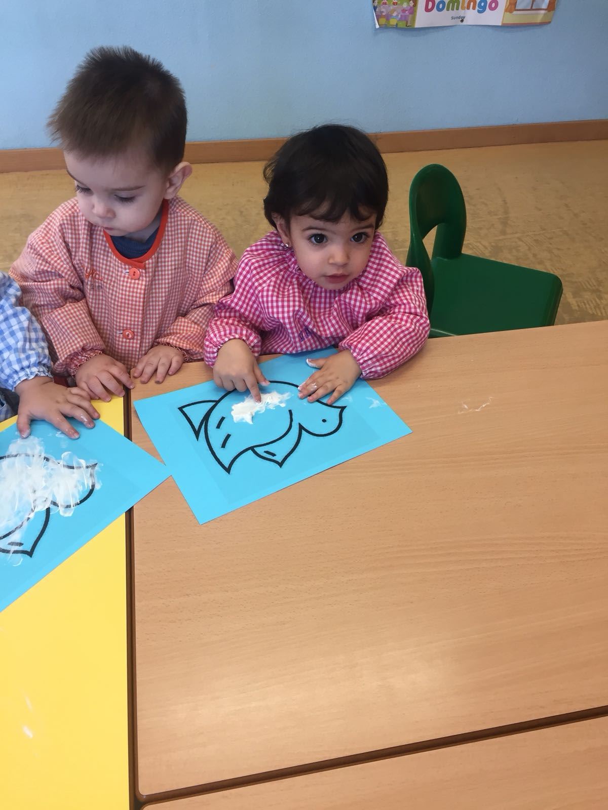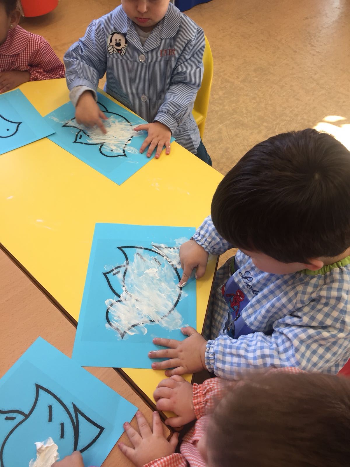 a guardería de Villoria se han sumado a la celebración pintando palomas blancas.