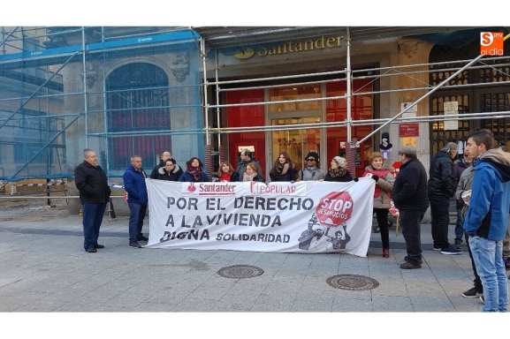 Concentración a las puertas del Banco Santander para exigir una solución negociada -dación en pago o carencia- para 14 familias salmantinas