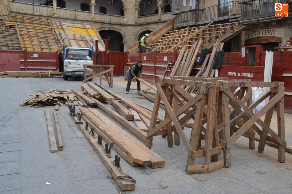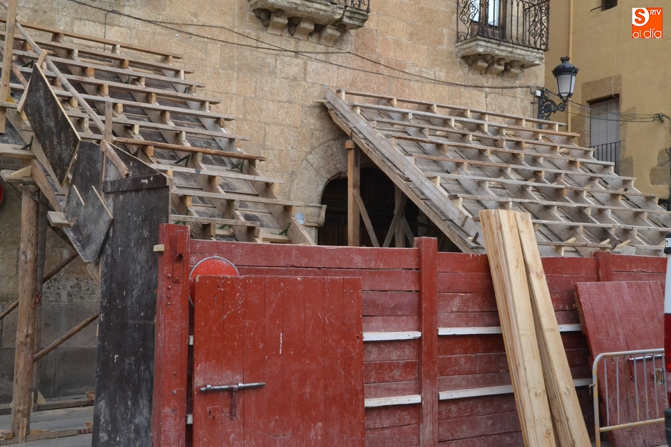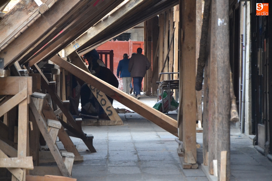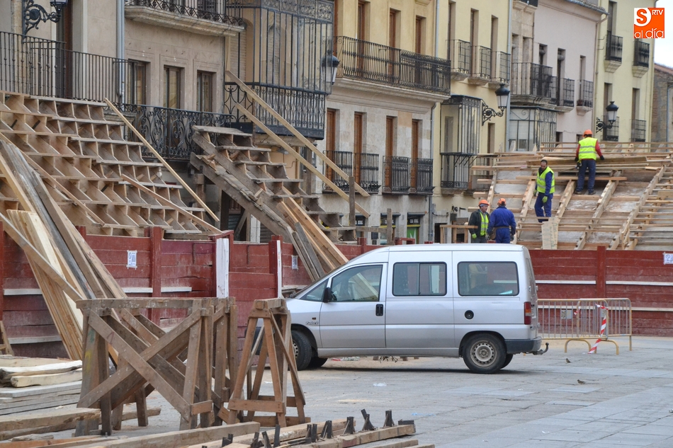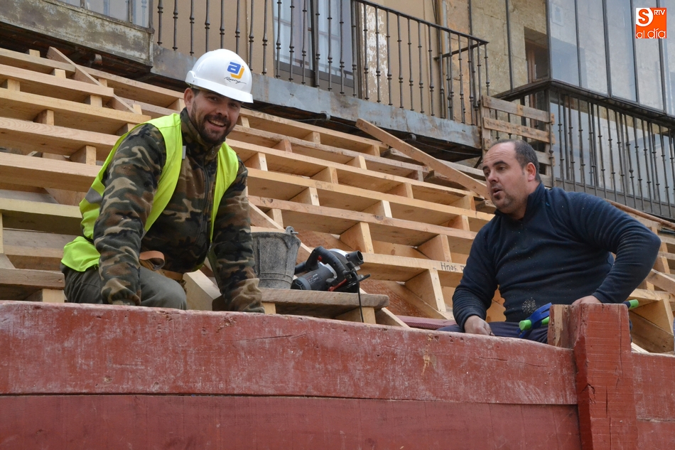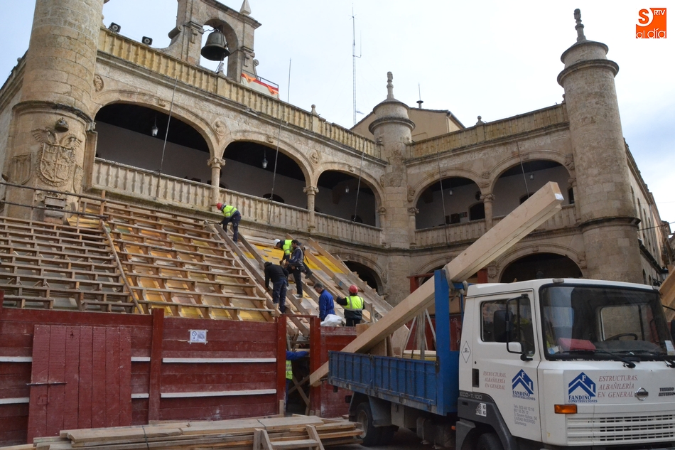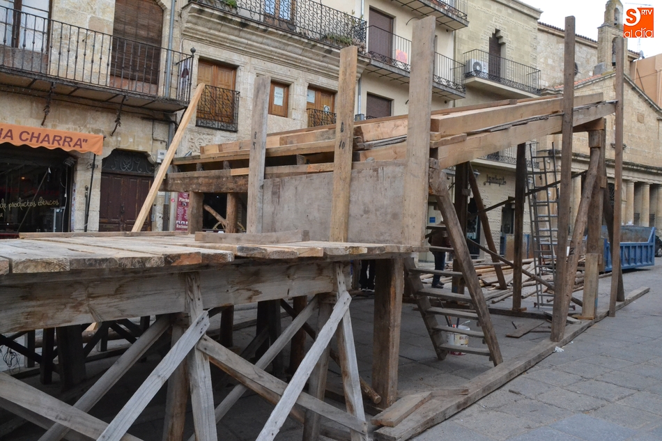 CIUDAD RODRIGO | A primera hora de la tarde del sábado, los trabajos de construcción de los tablaos marchaban muy avanzados