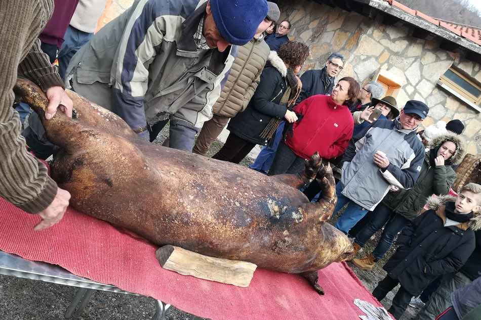MONTEMAYOR DEL RÍO | La nieve hace acto de presencia durante la matanza típica, que se ha tenido que celebrar en las dependencias habilitadas por el Ayuntamiento