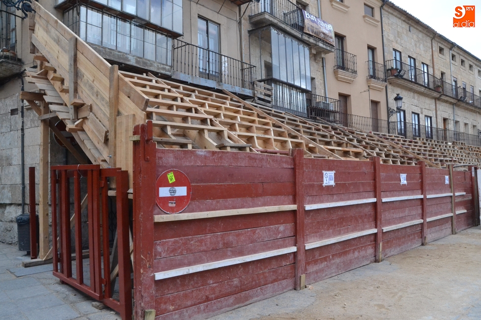 En otro orden de cosas, en la mañana del lunes se estaba procediendo al montaje por parte de operarios municipales de las gradas que llenan la balconada de la Casa Consistorial mirobrigense. Asimismo, se podía a ver a otros operarios realizando algunos retoques en las barreras.