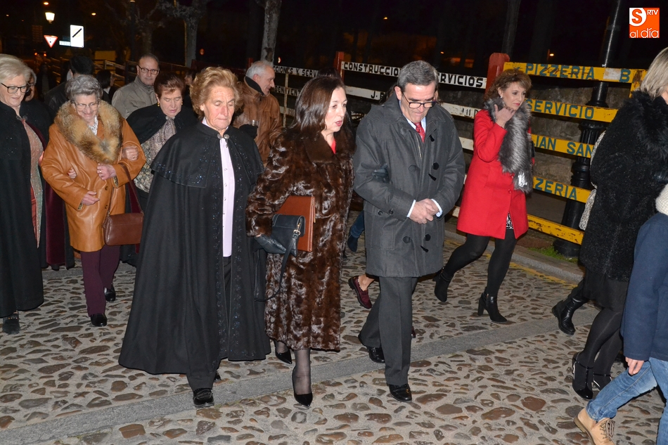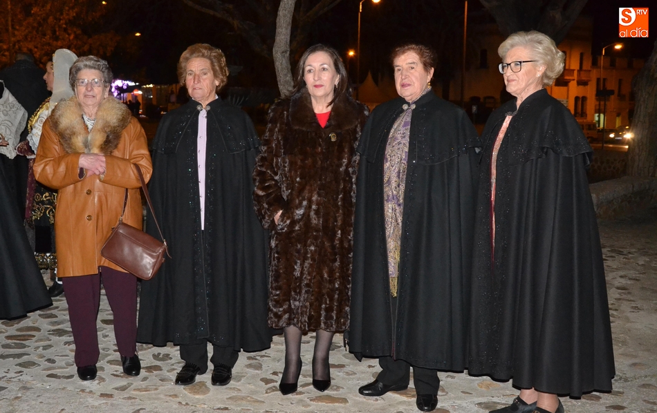 Precisamente, las Porteras fueron las protagonistas del tramo inicial del pregón de Adoración Cañamero. En torno a las hermanas Antonia, Rosario y Pilar, destacó que "sus caras y sus manos son el vivo retrato de la exposición continuada a los fríos del invierno o a los calores intensos del verano castellano; mujeres de temperamento, raza y coraje", resaltando "su valía personal y su incondicional entrega".