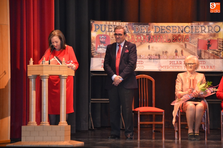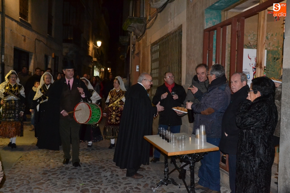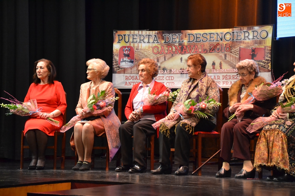 El tramo final del pregón estuvo dedicado a hablar de la Peña Puerta del Desencierro, una peña carnavalera "preñada de farinatismo y con rancia solera charra", formada por "un grupo de mirobrigenses que llevan en vena su amor a Ciudad Rodrigo, sus costumbres y tradiciones, predicando con el ejemplo a sus legítimos sucesores; un grupo, sí señores, que conoce, siente y ama Ciudad Rodrigo, tal y como he intentado pregonar".