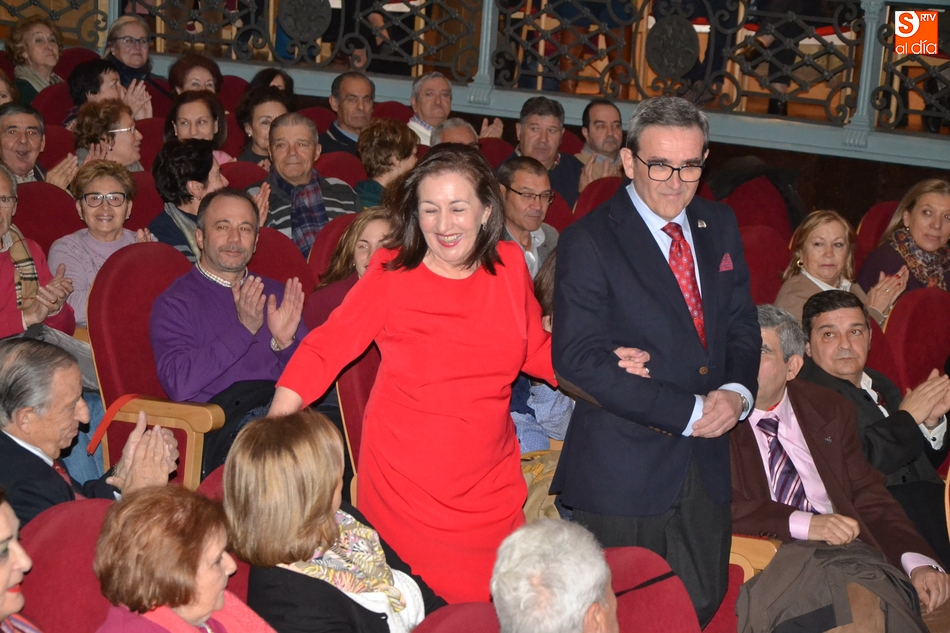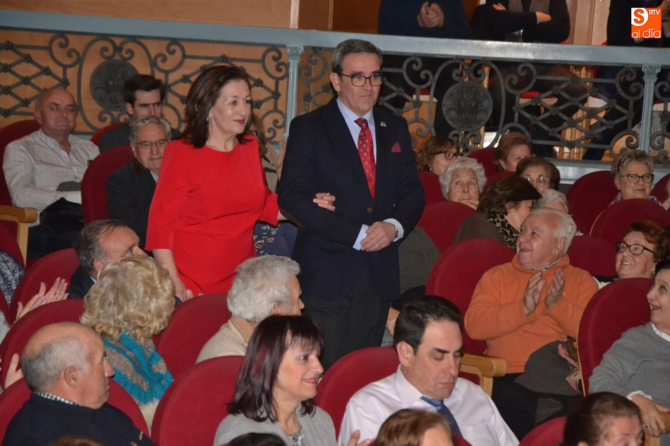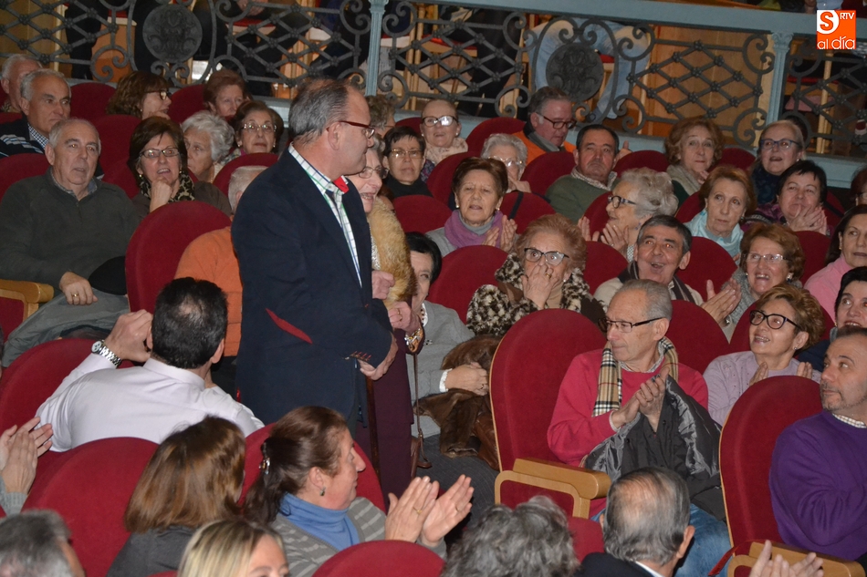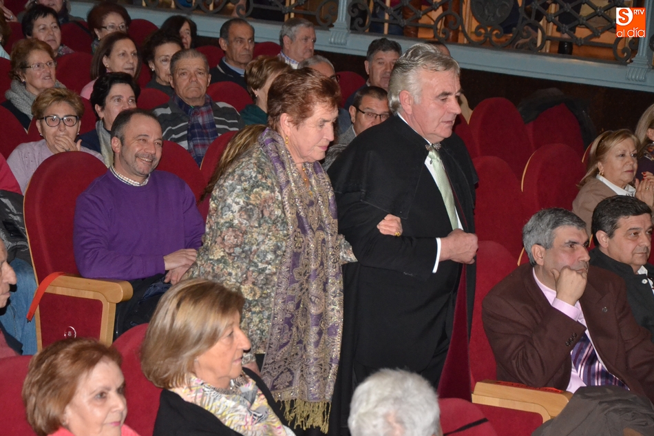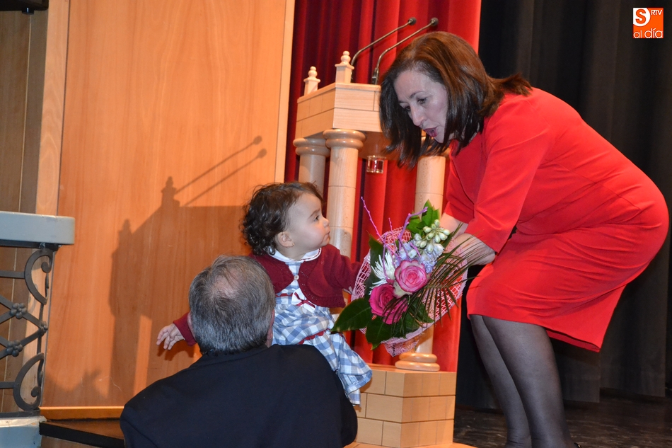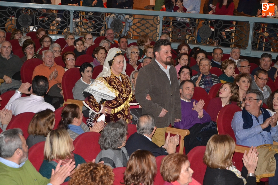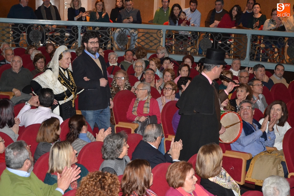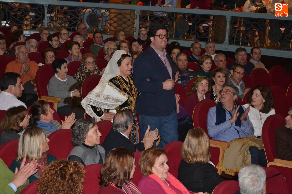 Una vez ya en el Teatro, y tras más fotos en el hall, dio arranque el acto con la bienvenida por parte de Julete Moriche, quién recordó que será en la jornada del Lunes de Carnaval, tras el encierro de ese día, cuando se producirá el homenaje como tal a las Porteras Mayores a las puertas de la sede de la Peña.