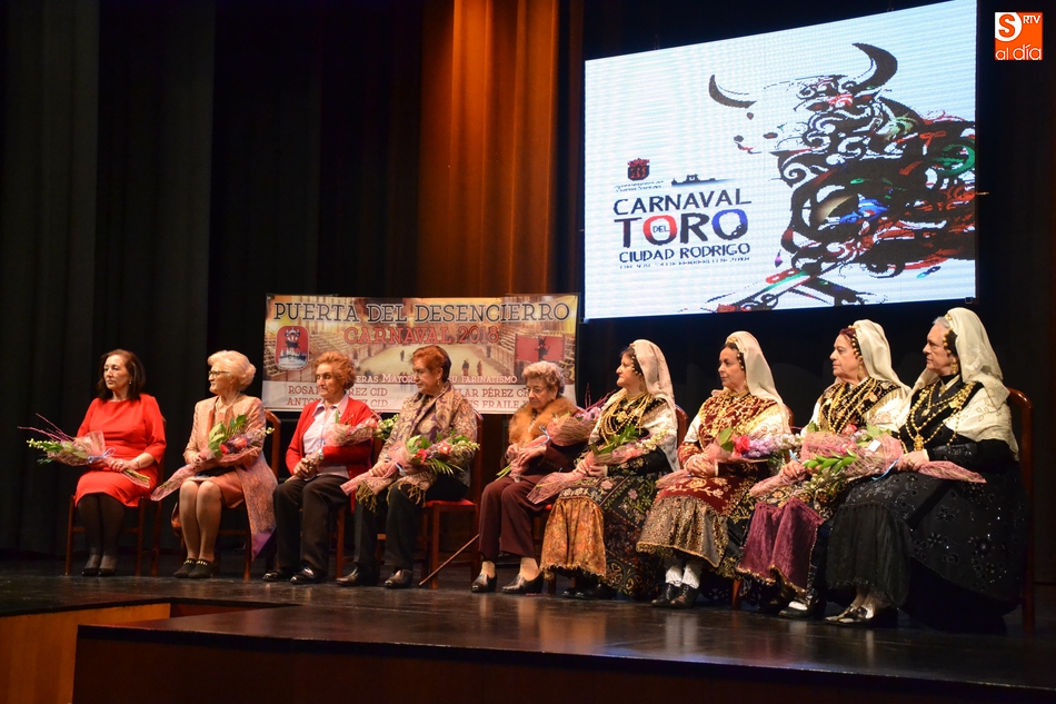 La festividad de Santa Águeda apareció en el calendario el lunes, pero el preCarnaval Cultural de Ciudad Rodrigo aplazó a la jornada del martes el 'dominio' de las mujeres, con una noche histórica para la Peña Puerta del Desencierro, que además de volver a contar con una pregonera, Adoración Cañamero, tuvo por primera vez a cuatro mujeres como Porteras Mayores del Carnaval, un puesto ocupado hasta la fecha por hombres. Estas Porteras Mayores de este año son Mercedes Fraile Varas (del Bar Barrigana) y Rosario, Antonia y Pilar Pérez Cid (las populares Hermanas Olaya).