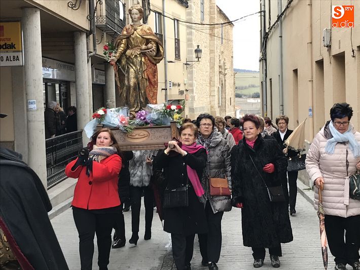 La gélida temperatura que marcaba el temporal en Alba de Tormes no impidió que las mujeres albenses disfrutasen del día de Santa Águeda. La eucaristía en la iglesia de San Pedro y la posterior procesión iniciaron la jornada festiva que culminó con una comida de confraternidad en el Restaurante Doña Matea.
