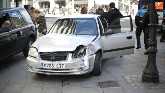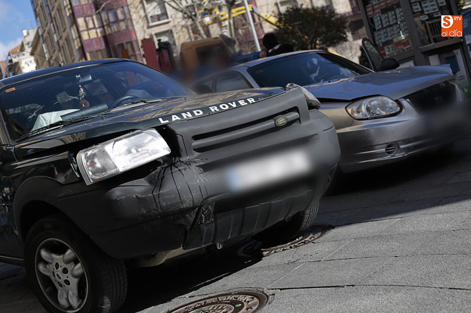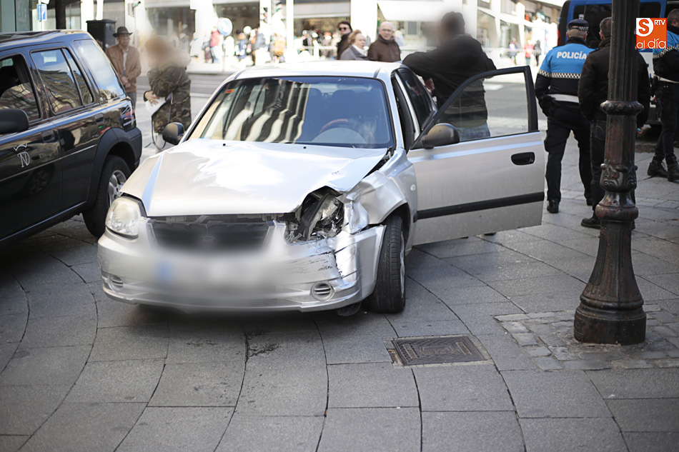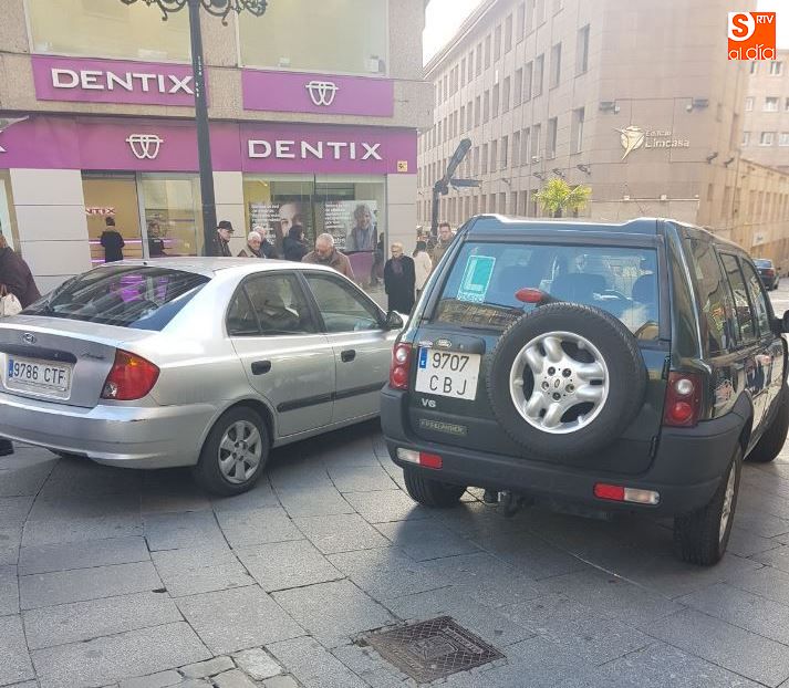Un todoterreno y un turismo chocaban, por lo que tuvieron que aparcar en la zona peatonal de la calle Toro, para no interrumpir el tráfico, hacer los partes correspondientes y esperar la llegada de la grúa.