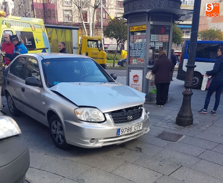 Una colisión entre dos automóviles tenía lugar esta mañana, alrededor de las 12.00 horas, en el cruce entre las calles María Auxiliadora y la avenida de Mirat, junto a la plaza de España.