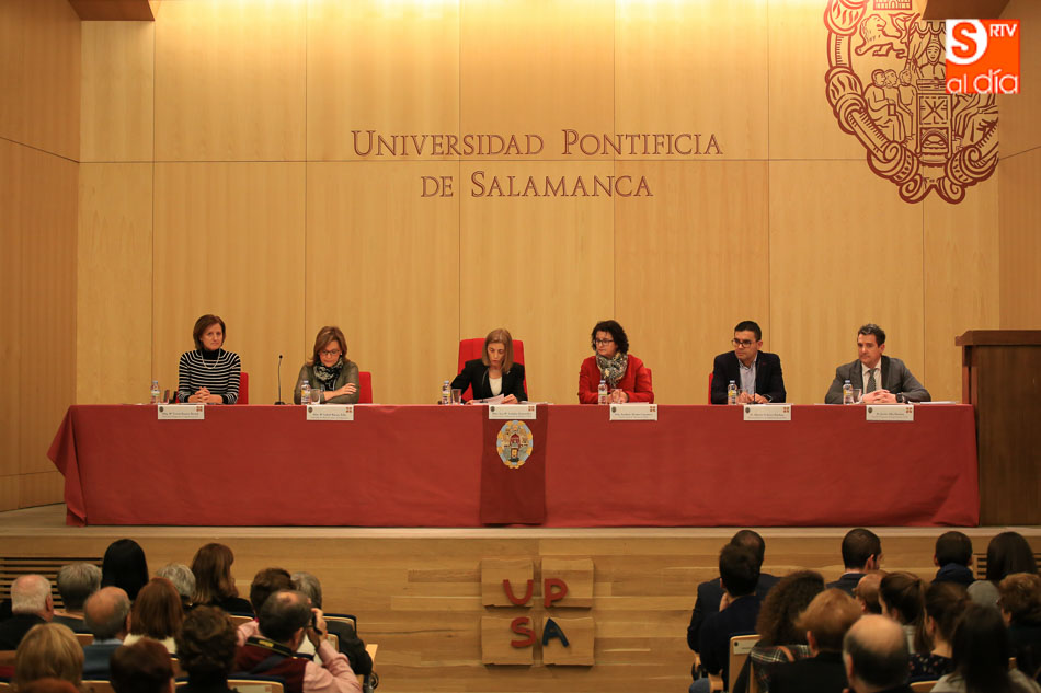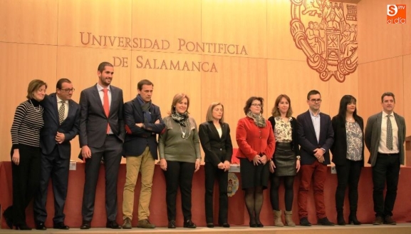 En el acto estuvieron presentes la vicerrectora de Ordenación Académica y Profesorado de la UPSA, Ana María Andaluz Romanillos; la concejala de Mayores del Ayuntamiento de Salamanca, Isabel Macías Tello; la vicerrectora de Docencia de la USAL, Izaskun Álvarez Cuarteto; el director del Servicio de Publicaciones de la UPSA, Albreto Pedrero Esteban; la directora del Programa Interuniversitario de la Experiencia de Castilla y León, María Teresa Ramos Bernal; y el coordinador del Programa Interuniversitario de la Experiencia USAL-Salamanca, Javier Alba Barrios.