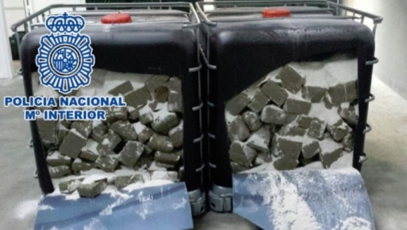 Los agentes frustraron la operación de carga y hallaron en el interior de dos depósitos, mezclados entre arena, un total de 1.200 paquetes recubiertos de precinto plástico. Cada paquete contenía otros cinco paquetes más pequeños con el dibujo de un cogollo de marihuana y la inscripción 'kritikal'. El peso de la sustancia intervenida asciende a 640 kilogramos. El estupefaciente intervenido tenía como destino Dinamarca, país de procedencia de los dos arrestados.