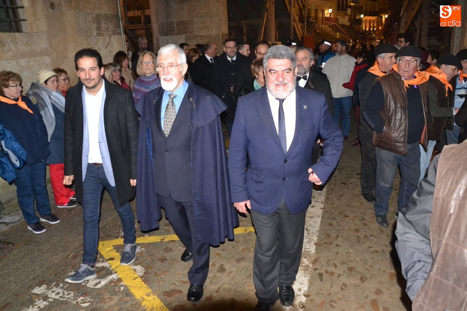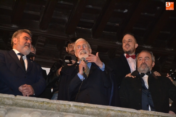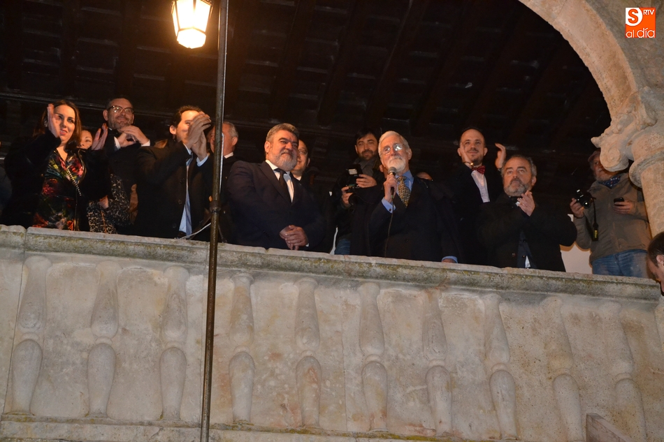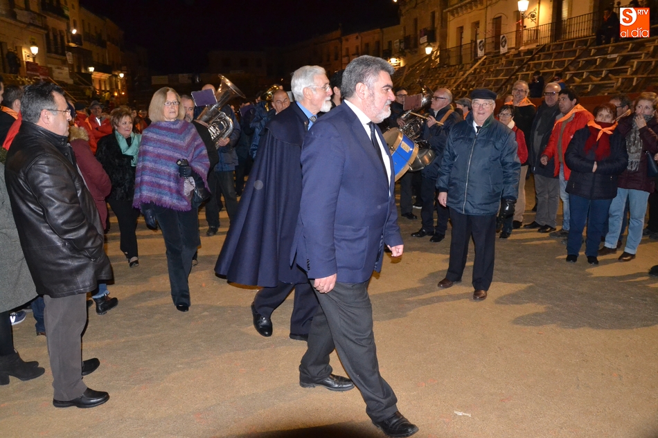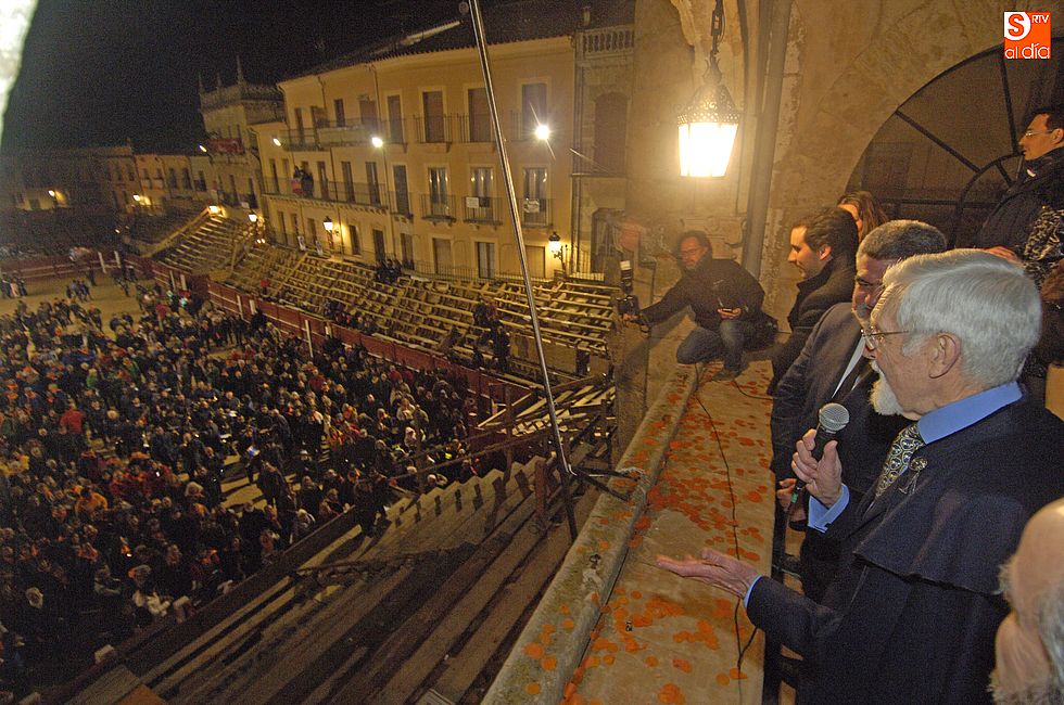 De forma previa al Pregón en el Teatro Nuevo Fernando Arrabal, el pregonero mayor del Carnaval 2018, el actor y director teatral irlandés Denis Rafter, ofreció desde la balconada de la Casa Consistorial el tradicional pregoncillo ante los mirobrigenses que habían querido congregarse en el coso taurino en la fría tarde del Viernes.