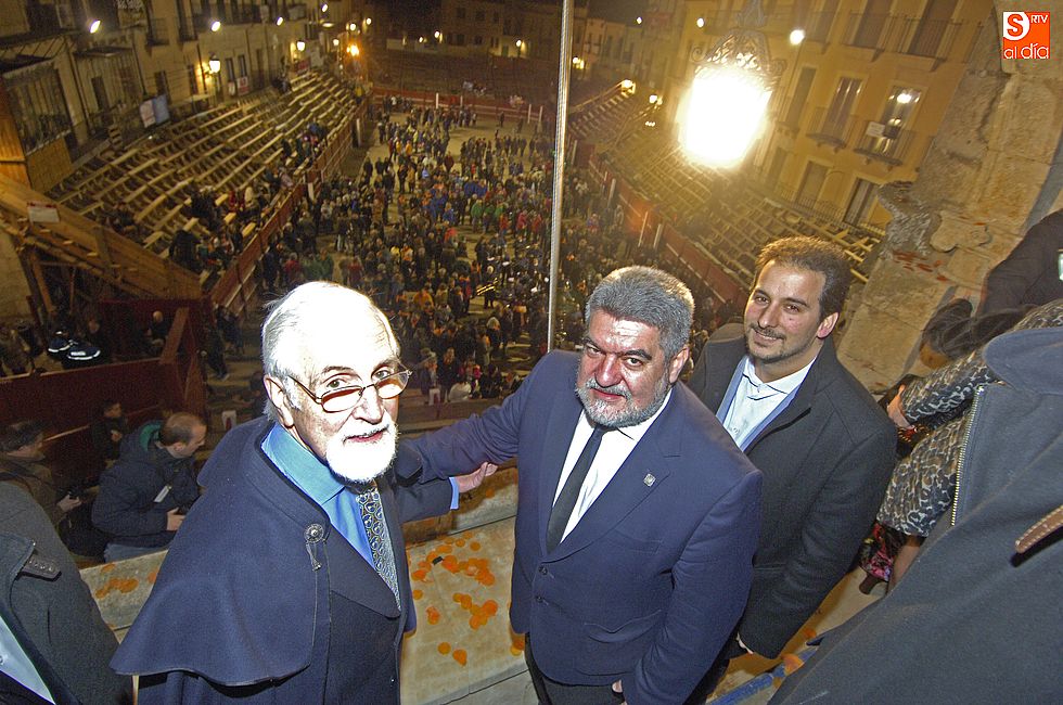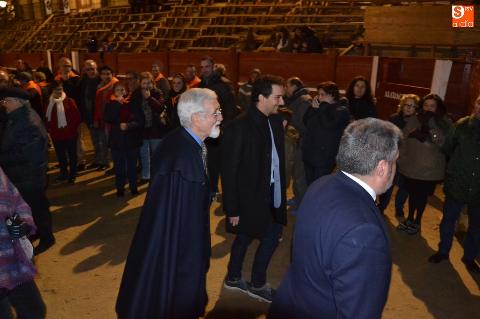 En el coso también estaba la Banda Municipal de Música, que previamente había recorrido tocando toda la calle Madrid (se concentraron junto a la bóveda para ir hasta el ágora). Justo a la llegada de la Banda, también hizo acto de presencia Denis Rafter acompañado del alcalde Juan Tomás Muñoz, así como de Domingo Benito y Joaquín Pellicer.