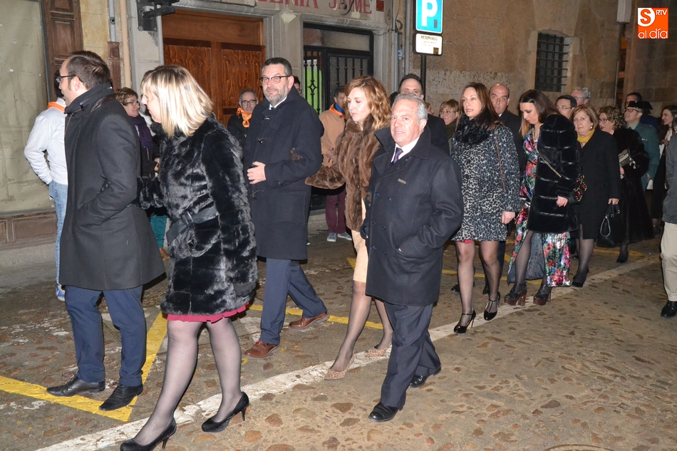 A continuación, y escoltados por la Banda Municipal de Música, Denis Rafter y la Corporación Municipal se dirigieron al Teatro Nuevo Fernando Arrabal para el acto del Pregón.