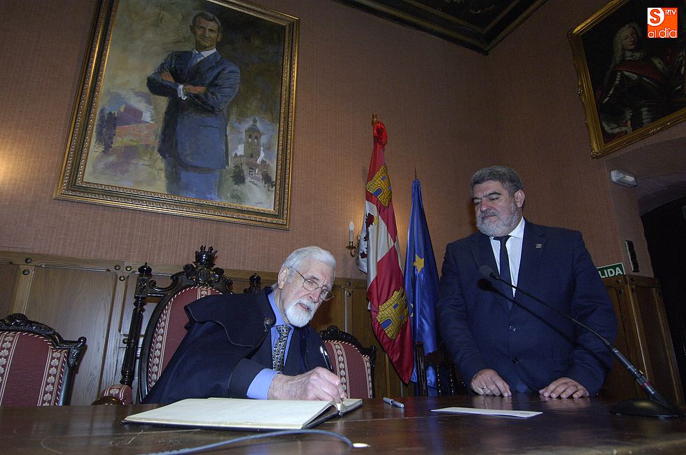 En los bajos de la Casa Consistorial, Rafter saludó a la mayoría de miembros restantes de la Corporación, antes de subir al salón de plenos, donde el pregonero firmó como es tradición en el Libro de Honor. A continuación, salió a la balconada, donde fue presentado por el alcalde Juan Tomás Muñoz, quién dijo que a la hora de organizar el Carnaval "se ha hecho el esfuerzo necesario para conseguir colaboración".