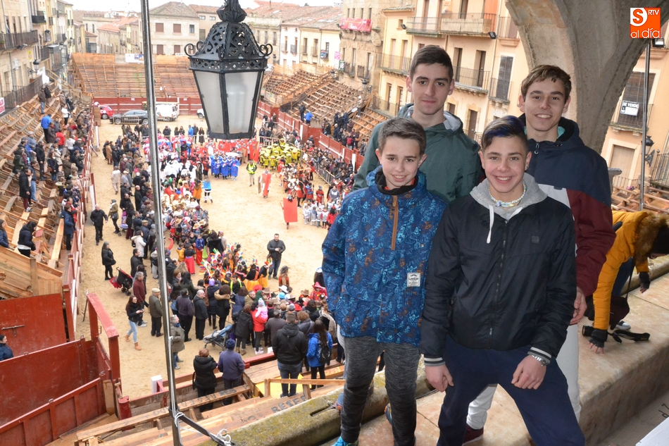 En la mañana del Viernes, estuvieron por allí unos cuantos jóvenes, que aprovecharon también para ver el paso por la Plaza de los pasacalles de los colegios San Francisco y Misioneras-Santa Teresa. Asimismo, también se pudo ver disfrazados a los alumnos del programa Turismo Miróbriga.