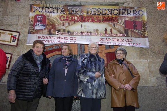 Este homenaje ?que tuvo lugar como siempre a las puertas de la Peña, al inicio de la calle Madrid- no fue uno más, ya que este año la Peña ha contado por primera vez con 4 Porteras Mayores: Mercedes Fraile Varas (del Bar Barrigana) y Rosario, Antonia y Pilar Pérez Cid (las populares Hermanas Olaya).