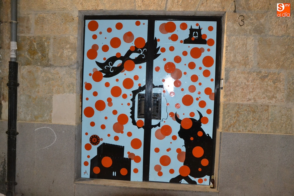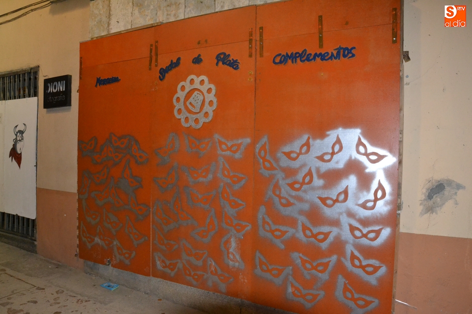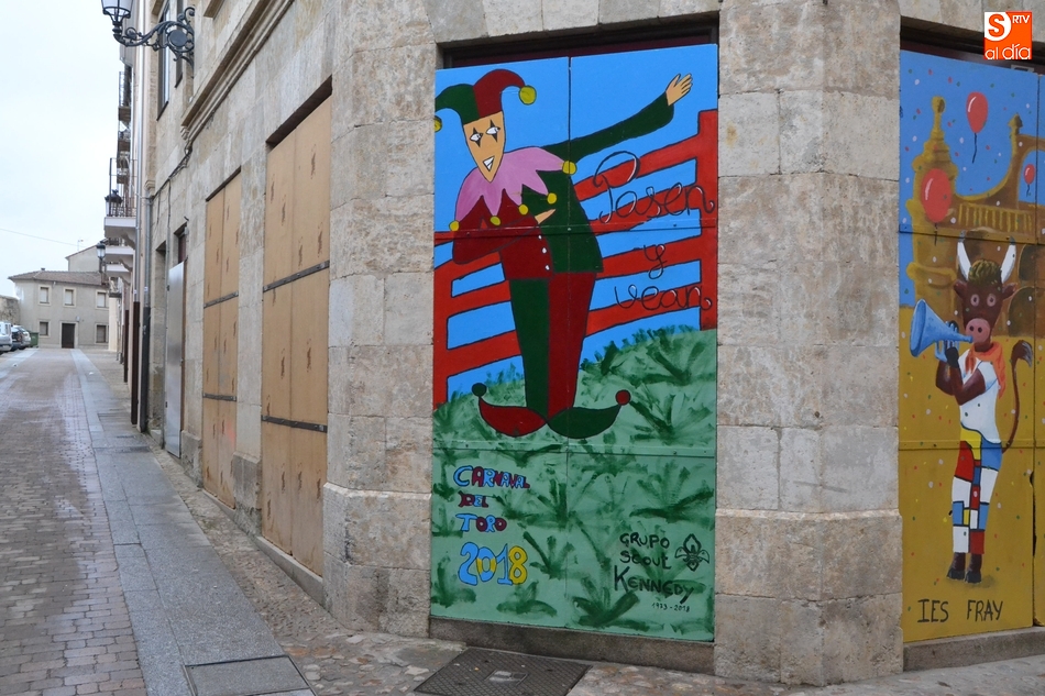 En las horas previas al inicio del Carnaval dimos cuenta de que por segundo año consecutivo la calle Madrid se iba a transformar en un gran museo carnavalero al aire libre gracias a los paneles decorativos colocados a modo de protección de los escaparates de varios establecimientos (así como en alguna puerta particular) por iniciativa de la Delegación de Comercio del Ayuntamiento de Ciudad Rodrigo tras recibir una propuesta de Afecir.