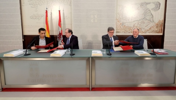 Es resultado de un modelo pionero, cuyo compromiso han rubricado el presidente de Castilla y León, Juan Vicente Herrera, el secretario regional de UGT, Faustino Temprano, el secretario general de CCOO, Vicente Andrés y el presidente de CECALE, Santiago