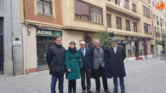 El Colegio de Arquitectos de Salamanca, con motivo de la celebración de su patrona, ha descubierto hoy una placa de la asociación Docomomo en el bloque -12 viviendas y cuatro locales- situado en la calle Pozo Amarillo 21-23. El edifico ahora catalogado por la Asociación para la Documentación y Conservación de la Arquitectura y el Urbanismo del Movimiento Moderno, Docomomo, es obra del arquitecto salmantino Francisco Gil González y el acto ha contado con el teniente de alcalde y concejal de Fomento, Carlos García Carbayo.