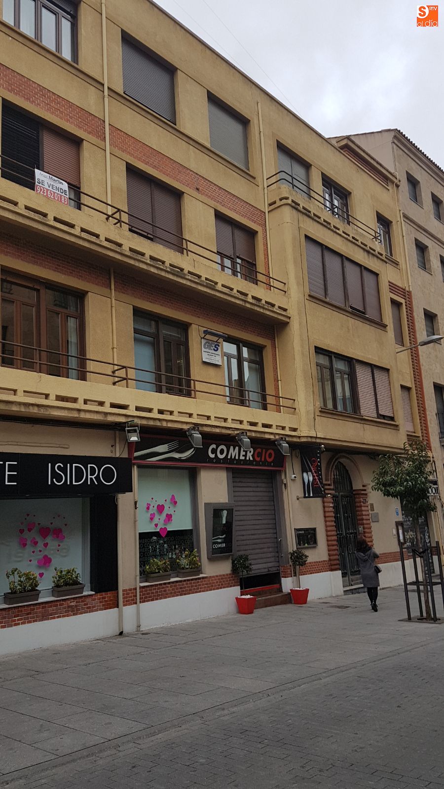 El arquitecto Marcelino Diego Robledo, nieto de Francisco Diego, promotor del edificio que data de 1935, explicó que su abuelo compró el solar en el que antes hubo una posada, La Cadena, que prácticamente ocupaba toda la calle, por lo que se llegó a un acuerdo "que permitía levantar el edificio si se cedía parte del terreno", demanera que permitiera comunicar la plaza de Santa Eulalia con la plaza del Mercado. Inicialmente, el edificio iba a ser hotel, Comercio, que antes estaba en el antiguo edificio del Banco de España, pero tras la Guerra Civil, se convirtió en un edificio destinado a viviendas.