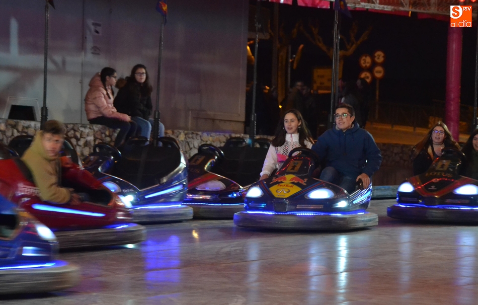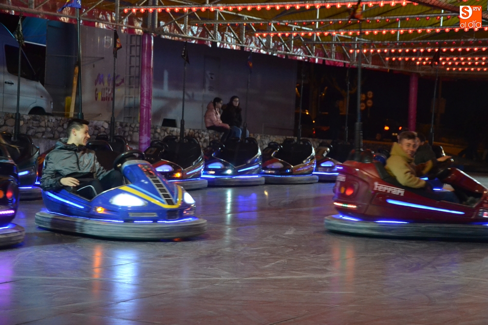 Este año, fue especialmente significativo el ajetreo que tenía con la noche ya caída la zona donde han estado situadas las atracciones destinadas a los más pequeños, como los hinchables, el clásico tiovivo, o la pista pequeña de coches chocones. Por el contrario, la pista grande de coches chocones tenía de forma inusual una baja actividad.