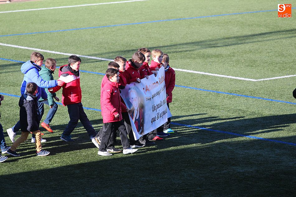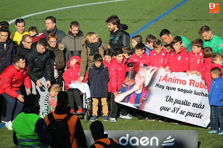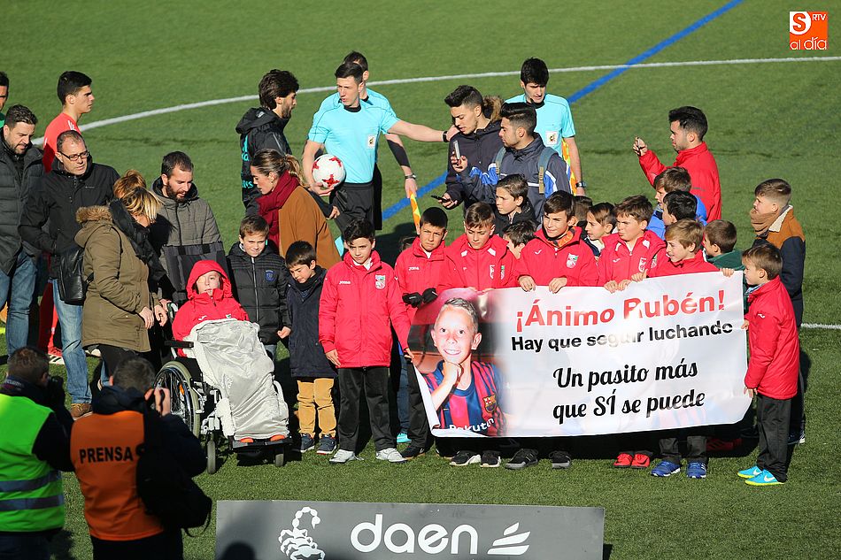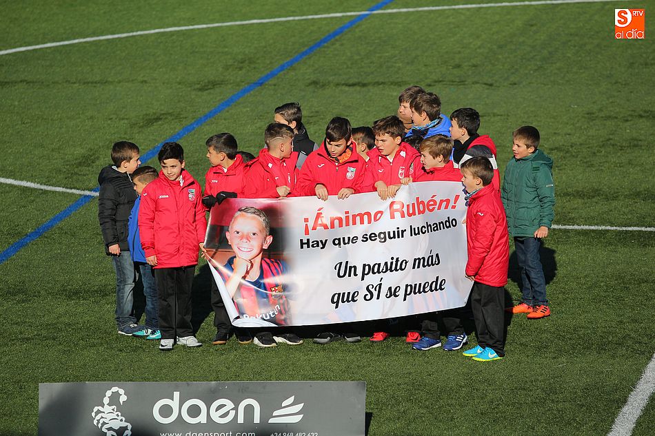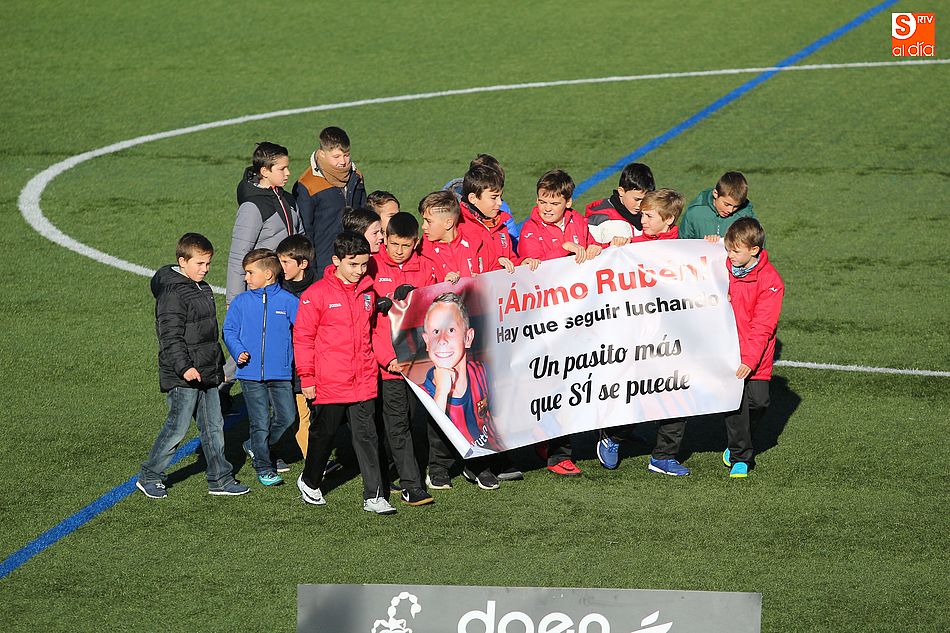 En los prolegómenos el conjunto verdiblanco dedicó un homenaje a Rubén, jugador alevín del Navega que está en plena fase de recuperación de una grave enfermedad y que está recibiendo el cariño de todo el fútbol salmantino