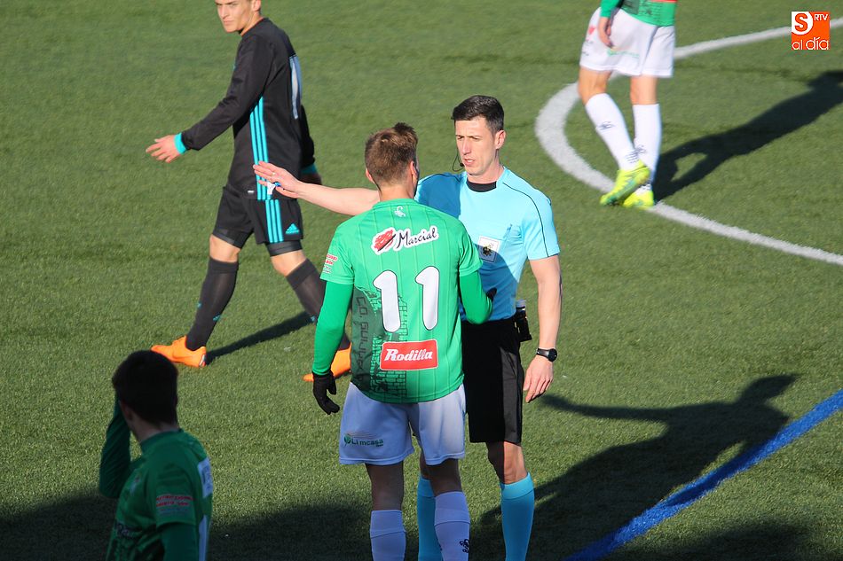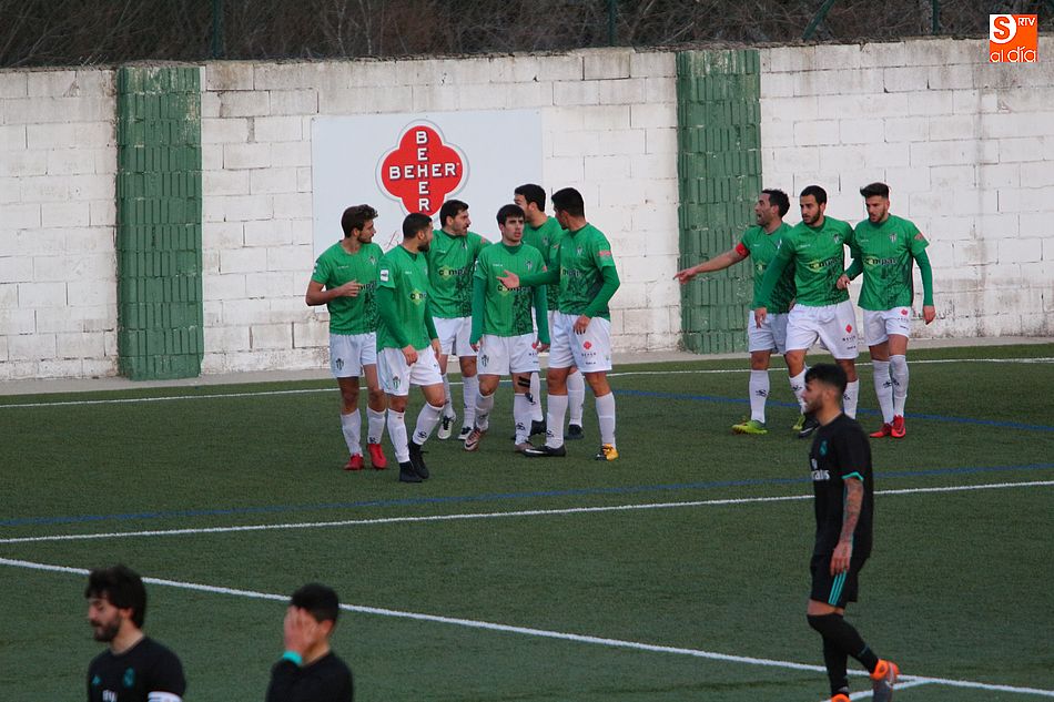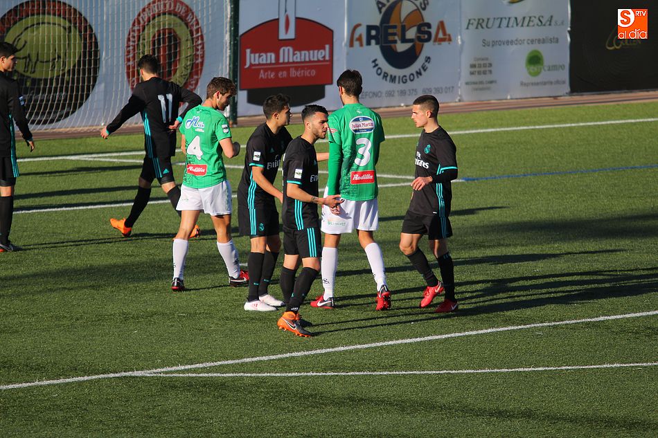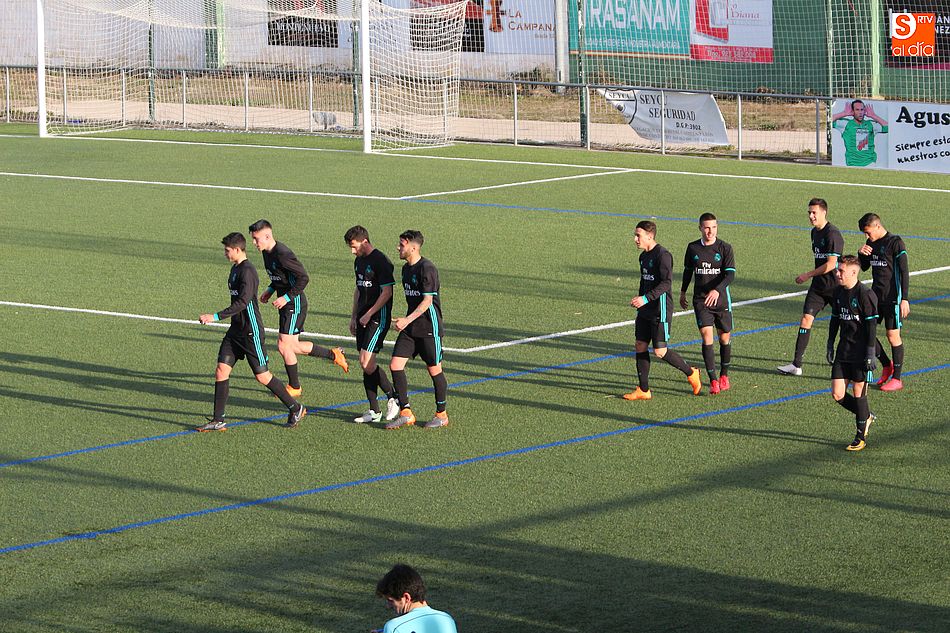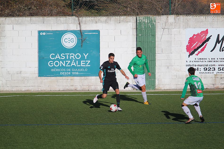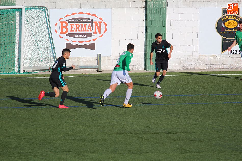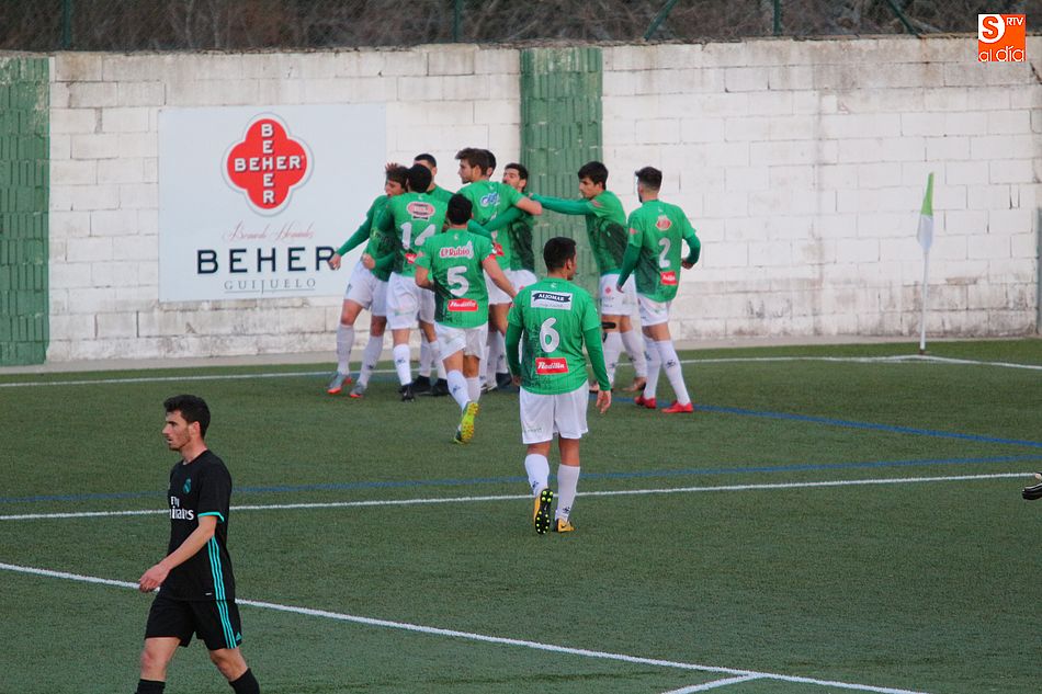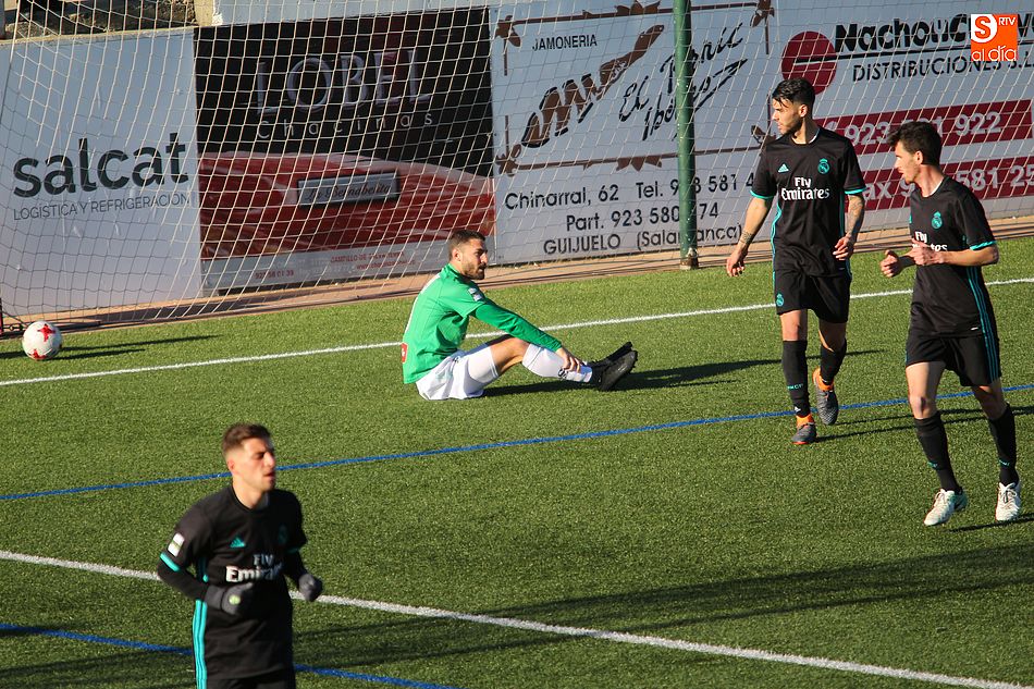 El choque se desniveló en la primera parte con el gol de Quezada a los 44 minutos en una de las pocas llegadas de los madridistas al portal de Kike Royo. El Guijuelo tuvo su ocasión más clara a los 25 minutos por medio de Carmona tras rematar un centro de Nacho Pérez.