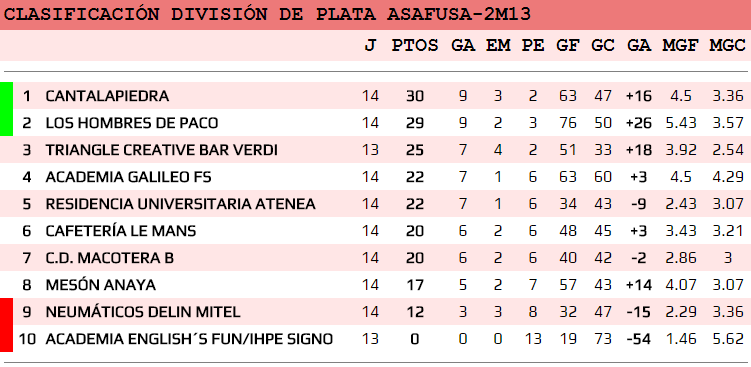 El CAFETERÍA LE MANS venció por un contundente 4-11 al equipo que se encontraba más en forma de la División de Plata, la ACADEMIA GALILEO FS. Nadie había conseguido marcarle tantos goles, pero los jugadores de Le Mans lo hicieron, en especial Maykel Acosta que consiguió marcar cuatro goles y Daniel Cadagüa que hizo tres.