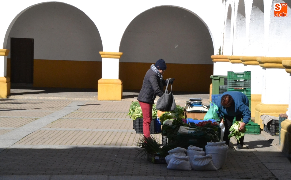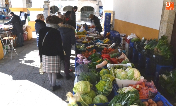 La Plazuela del Buen Alcalde de Ciudad Rodrigo ha recuperado esta semana su clásico mercado de frutas y verduras de los martes tras el descanso obligado de la semana pasada con motivo del Carnaval del Toro.