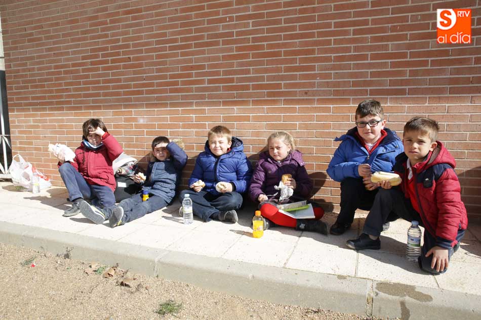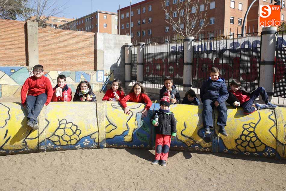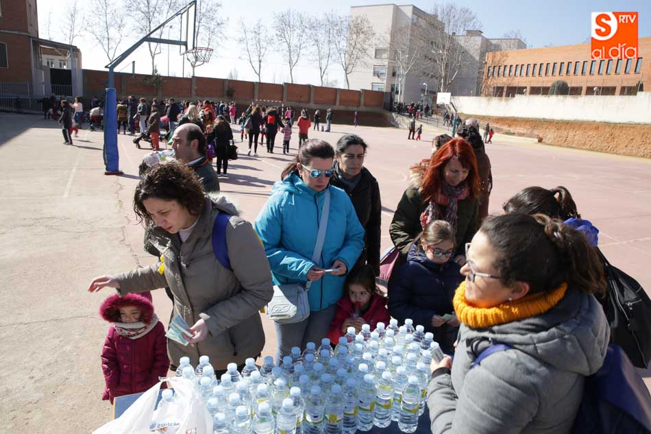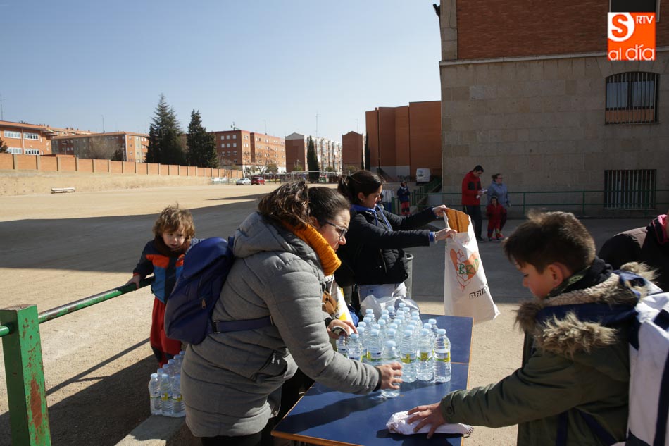 El patio del centro se llenó de vida y actividad, una vez que concluyeron las clases matinales, para repartir los bocadillos y las botellas de agua entre los alumnos y docentes. Un encuentro solidario al que también se unieron familias.