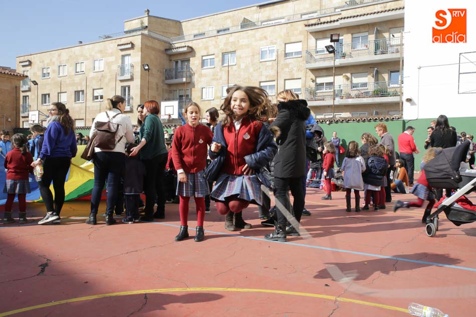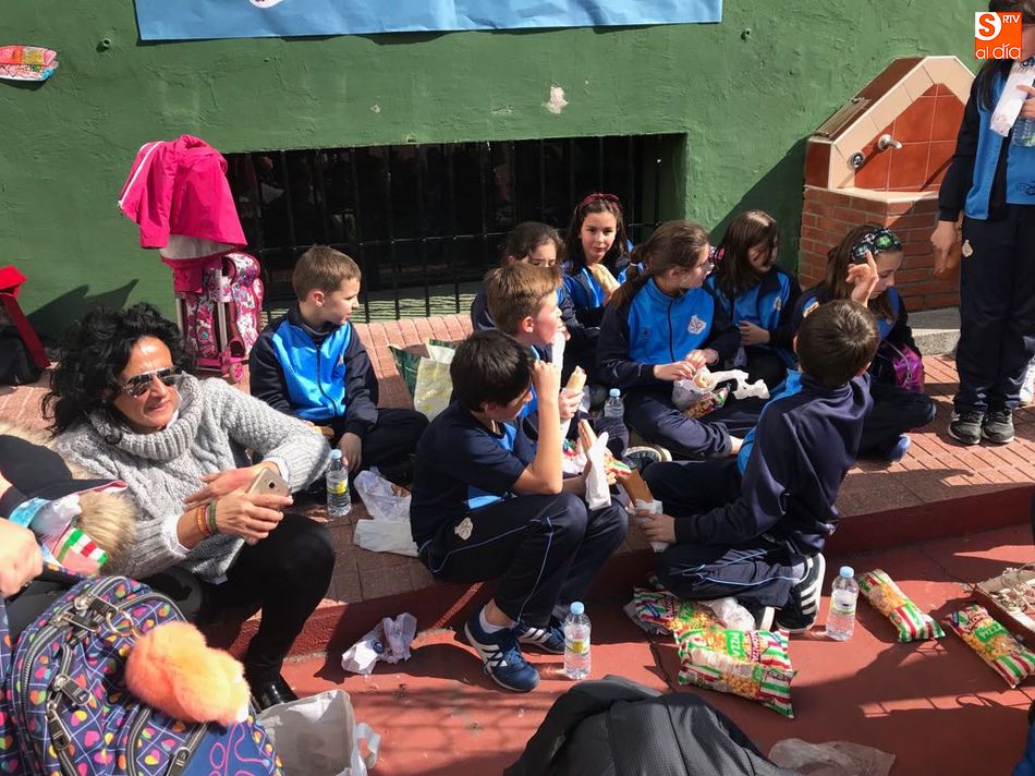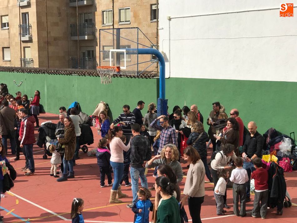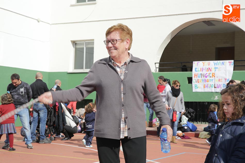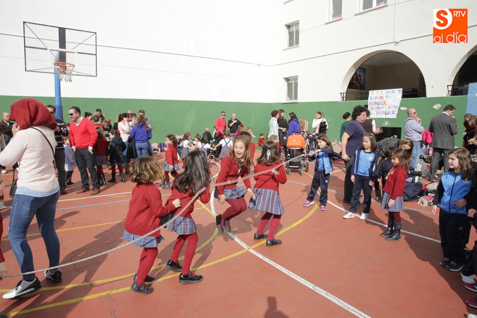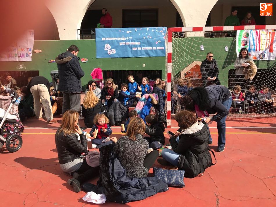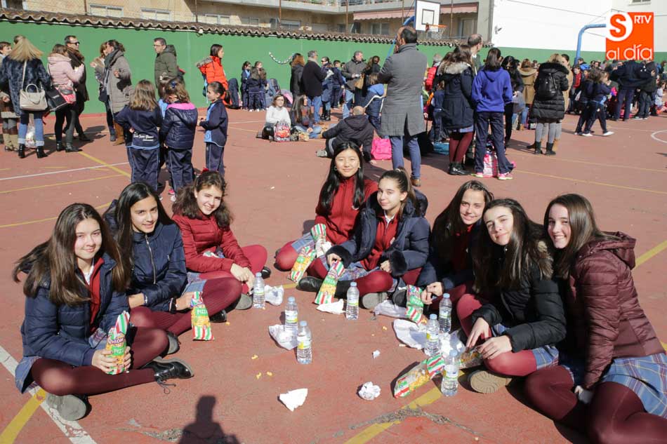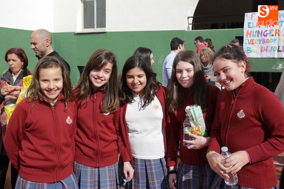 En mitad de un ambiente festivo, alumnos, docentes y familiares disfrutaron de los bocadillos que habían preparado los voluntarios de Manos Unidas.