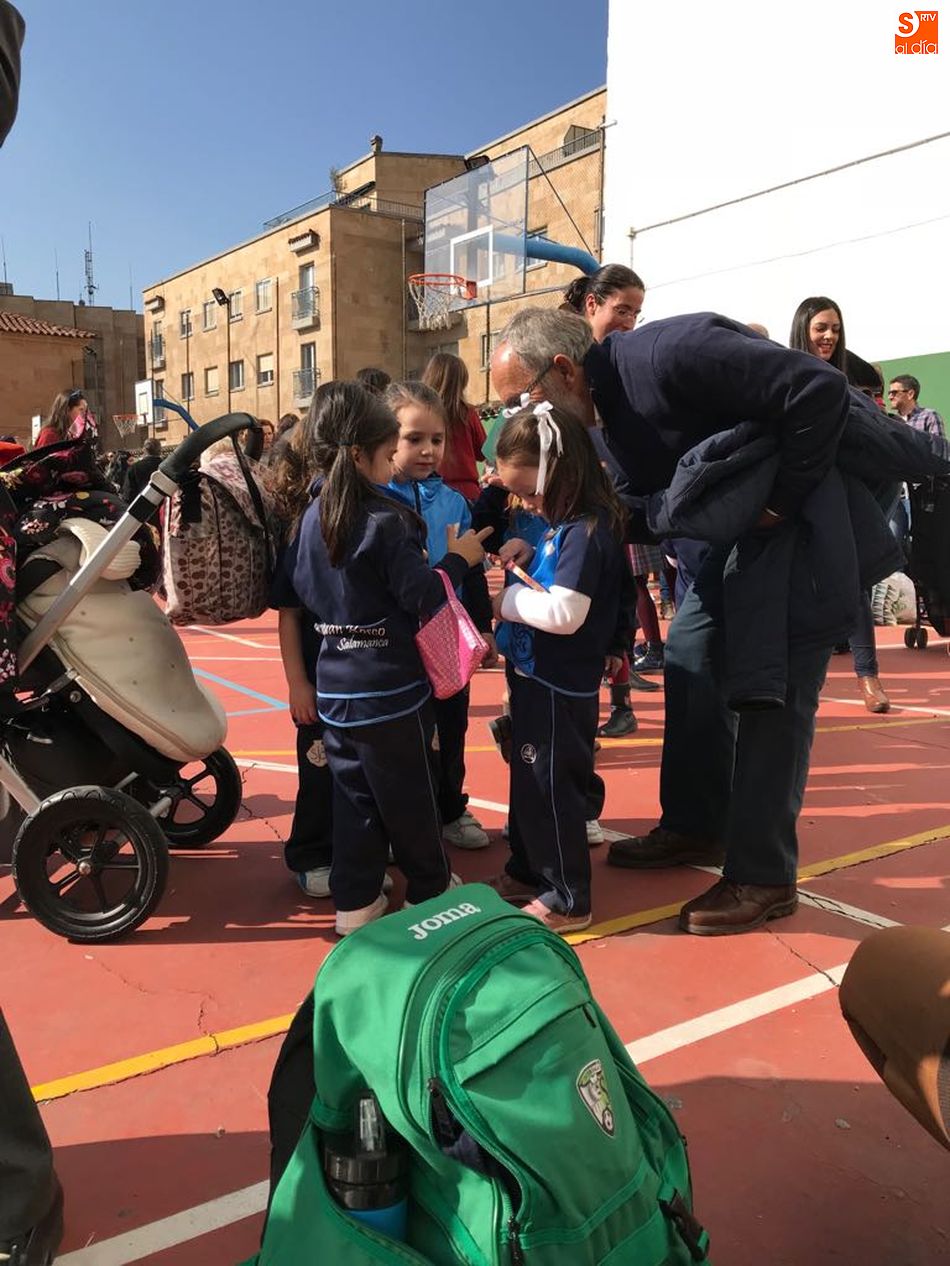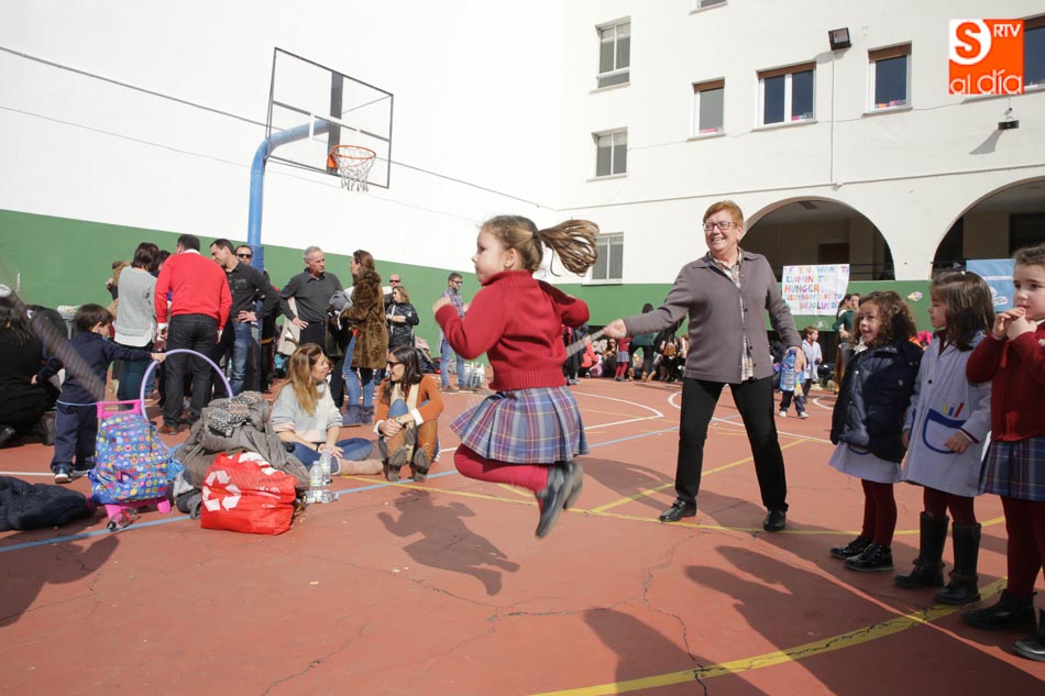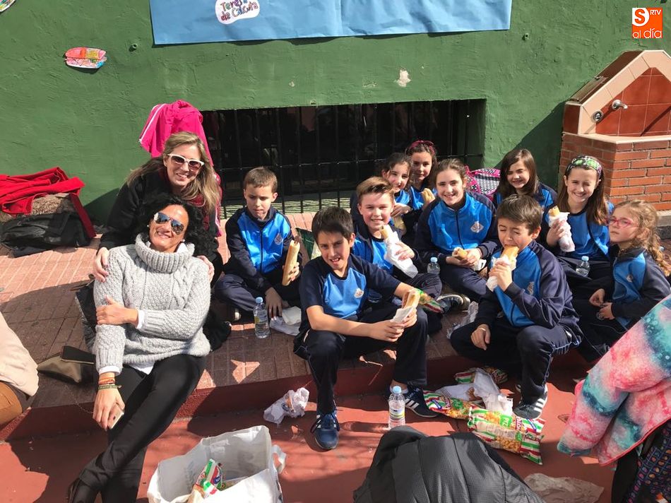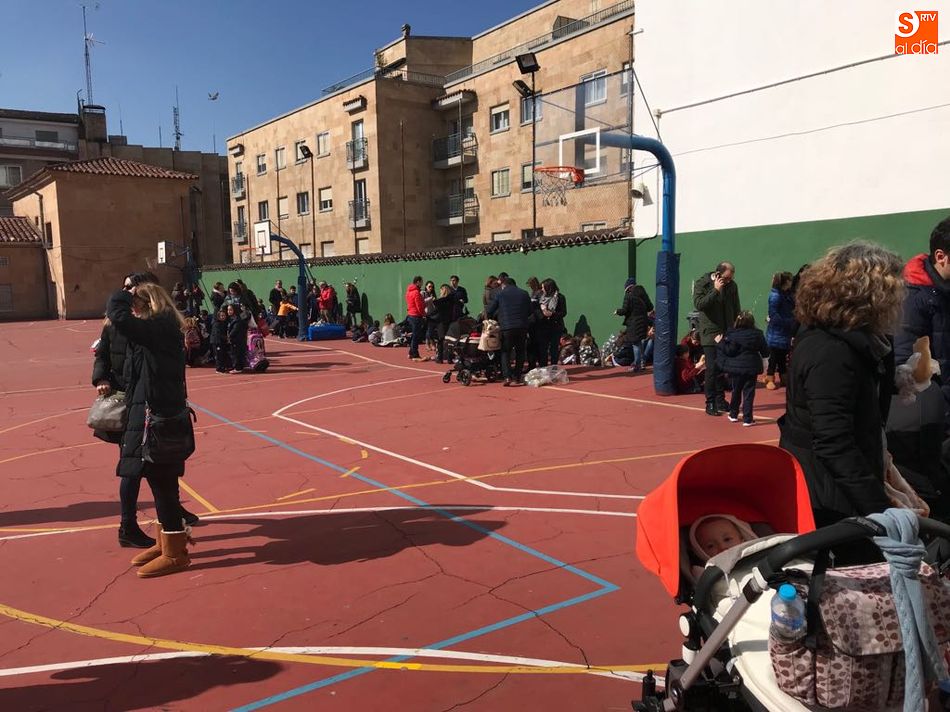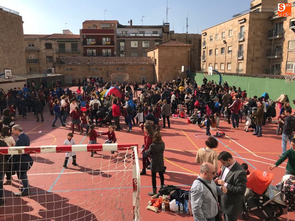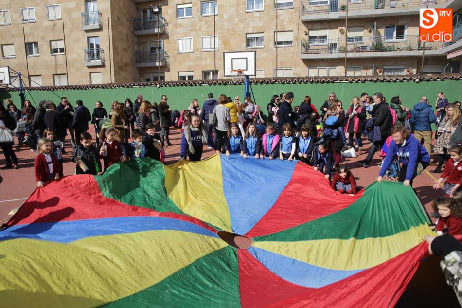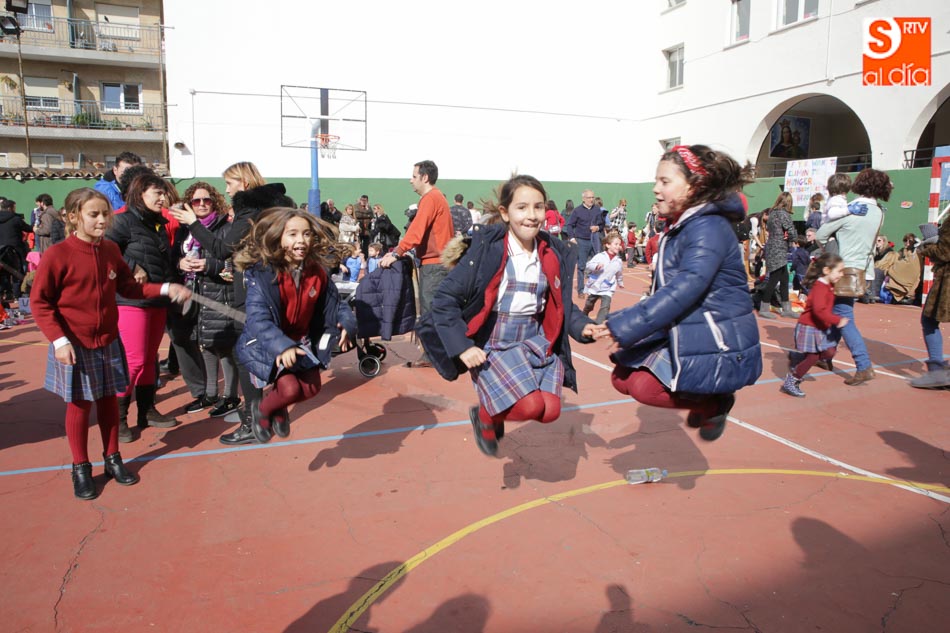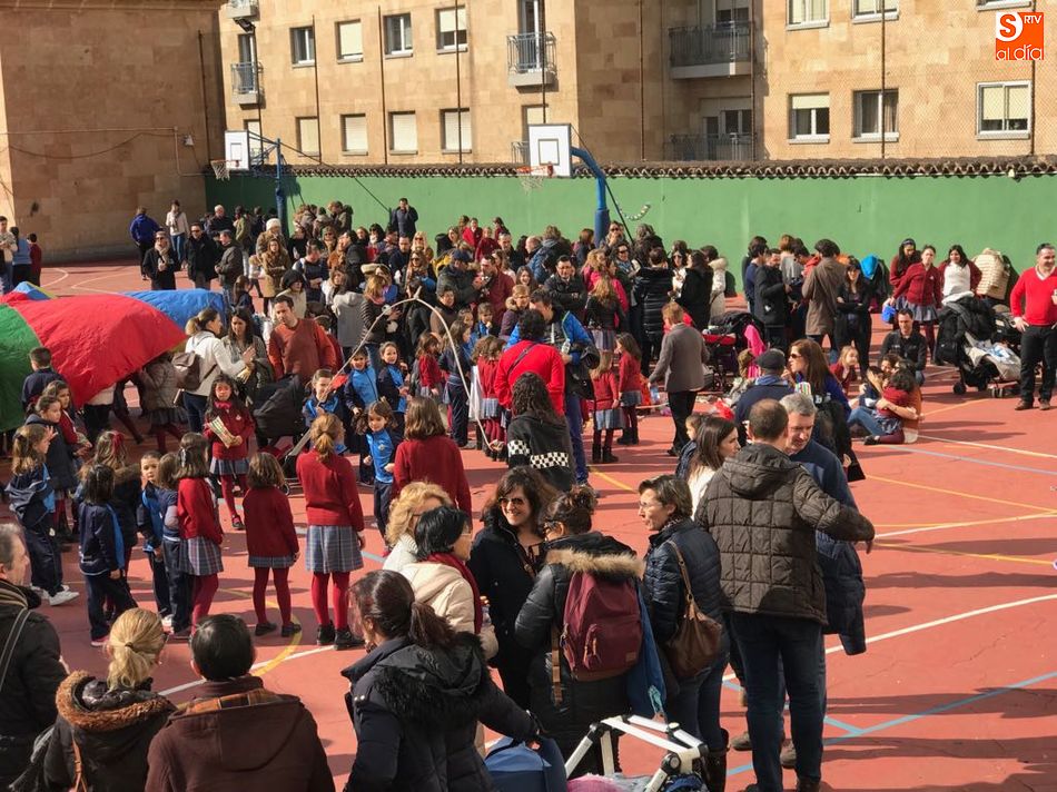 En mitad de un ambiente festivo, alumnos, docentes y familiares disfrutaron de los bocadillos que habían preparado los voluntarios de Manos Unidas.