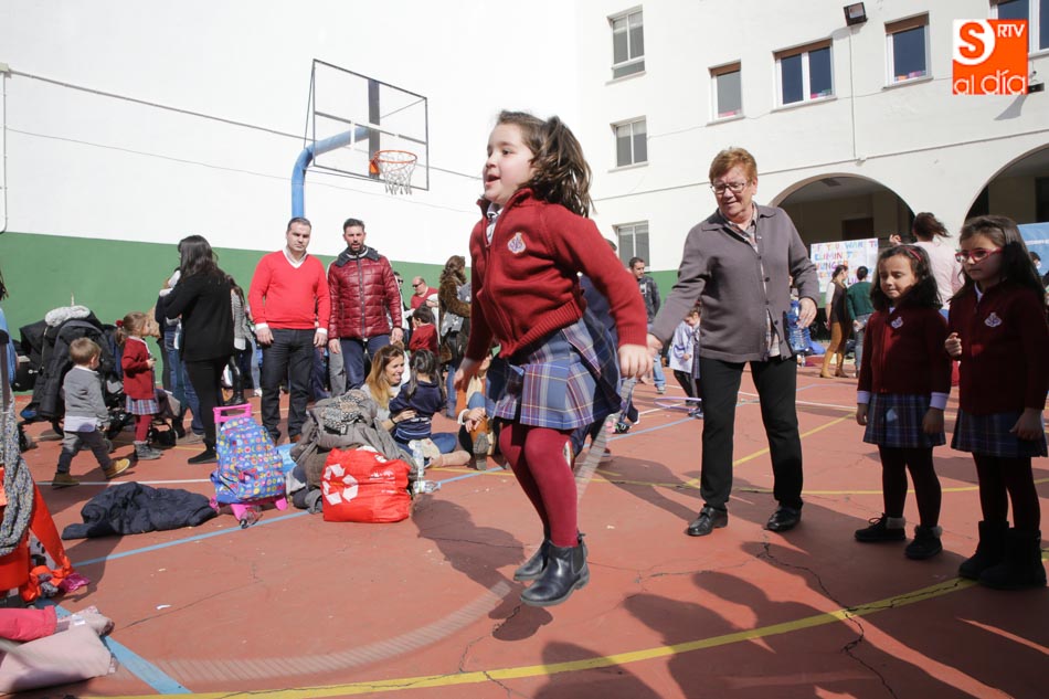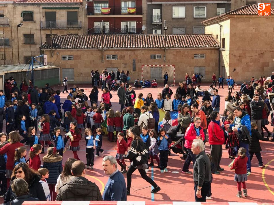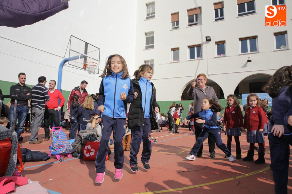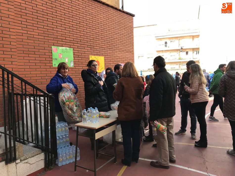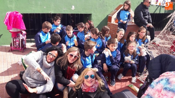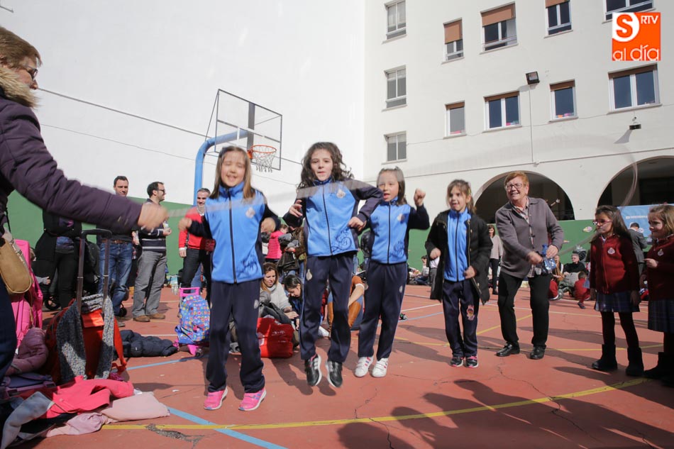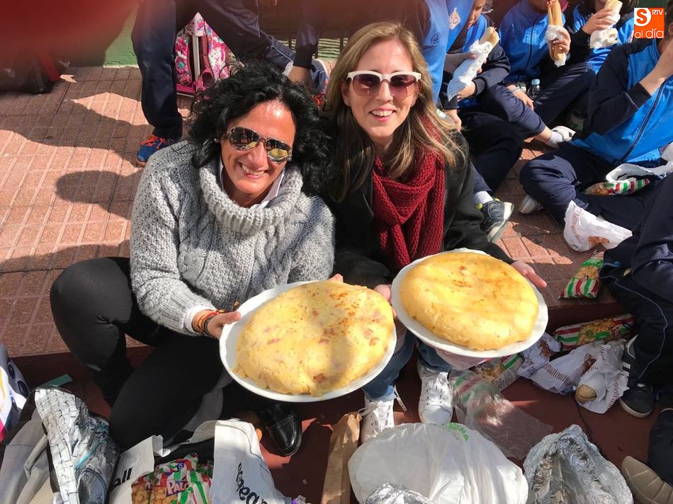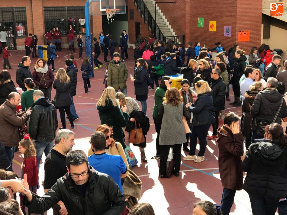 En mitad de un ambiente festivo, alumnos, docentes y familiares disfrutaron de los bocadillos que habían preparado los voluntarios de Manos Unidas.