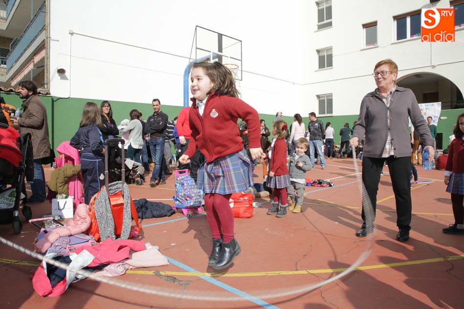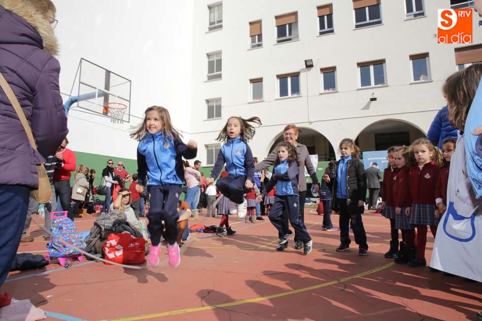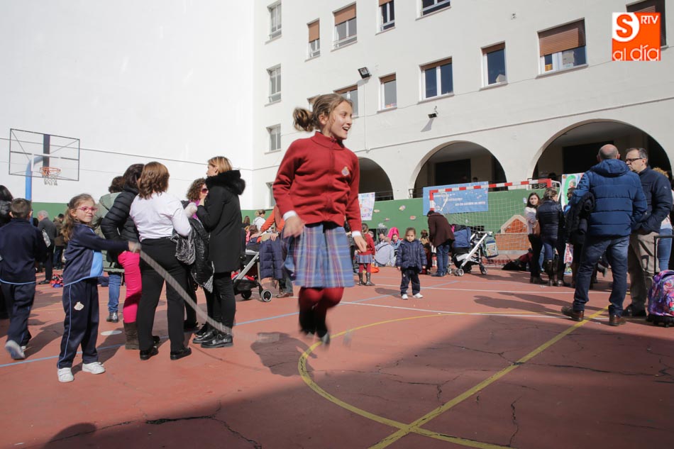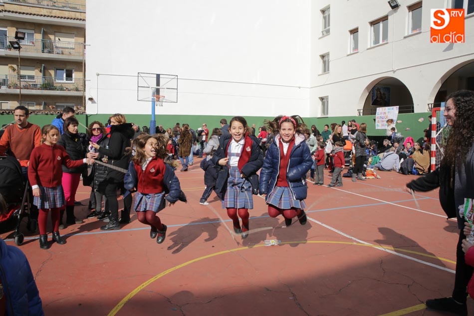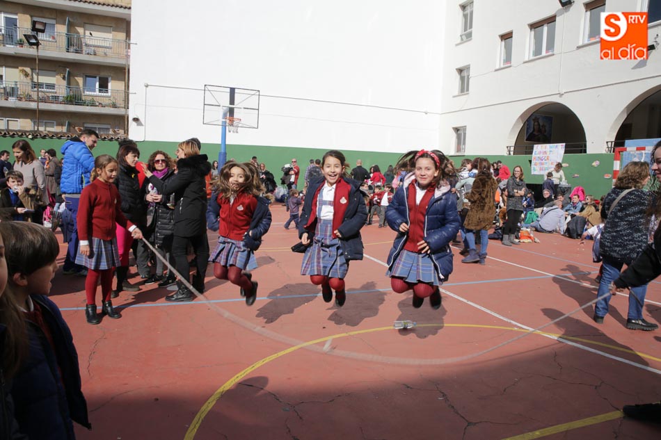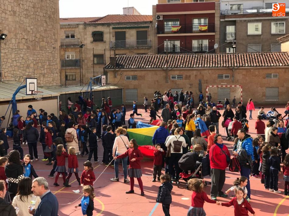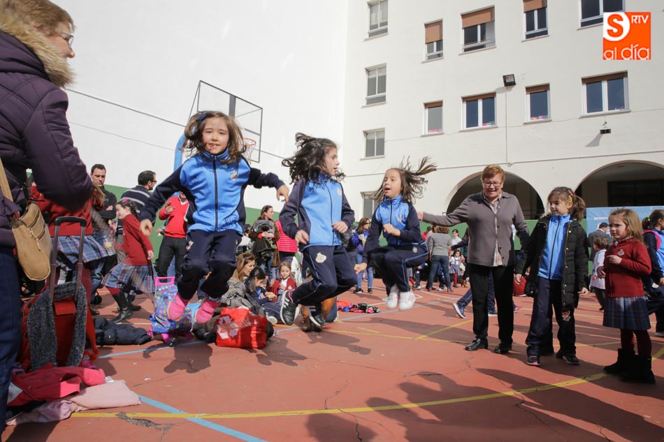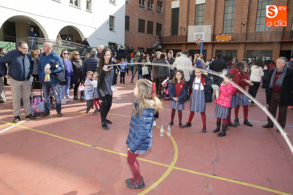 En mitad de un ambiente festivo, alumnos, docentes y familiares disfrutaron de los bocadillos que habían preparado los voluntarios de Manos Unidas.