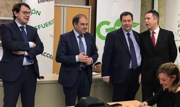 El alcalde de Salamanca, Alfonso Fernández Mañueco; el presidente de la Federación Nacional de Asociaciones de Trabajadores Autónomos (ATA), Lorenzo Amor, y la presidenta de la asociación en Castilla y León, Soraya Mayo, han visitado a los participantes del segundo 'coworking' municipal que se realiza en la Cámara de Comercio, de la mano de la Escuela de Organización Industrial, socia del Ayuntamiento. Fernández Mañueco afirmó que en esta segunda edición, con una inversión de 200.000 euros, participan 25 nuevos emprendedores con 20 proyectos, recordando que recordó que en la anterior "nueve de los 18 proyectos se convirtieron en empresas".