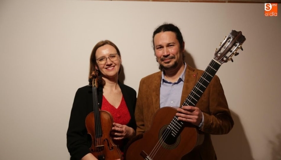 El dúo musical Alé&Olé Duo, conformado por la violinista ucraniana Olena Sokolovska y el guitarrista colombiano Pedro Alejandro Ospina Sandoval, presentaba esta noche en la Casa de las Conchas su obra Concerto; un excelente trabajo de arreglos y composiciones realizados por ellos, con el cual desean contribuir como parte de su tarea educativa y cultural a los repertorios para violín y guitarra.