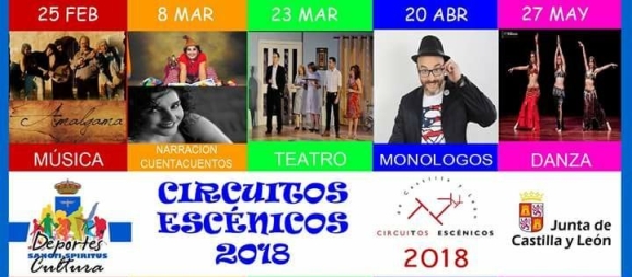 La localidad de Sancti-Spíritus arrancará el próximo domingo 25 de febrero una potente programación cultural de la mano de la Red de Circuitos Escénicos de Castilla y León que promueve la Junta. En total, a lo largo del 2018 se podrá disfrutar en el municipio en el marco de este programa de hasta 10 espectáculos, repartidos en varios momentos del año.