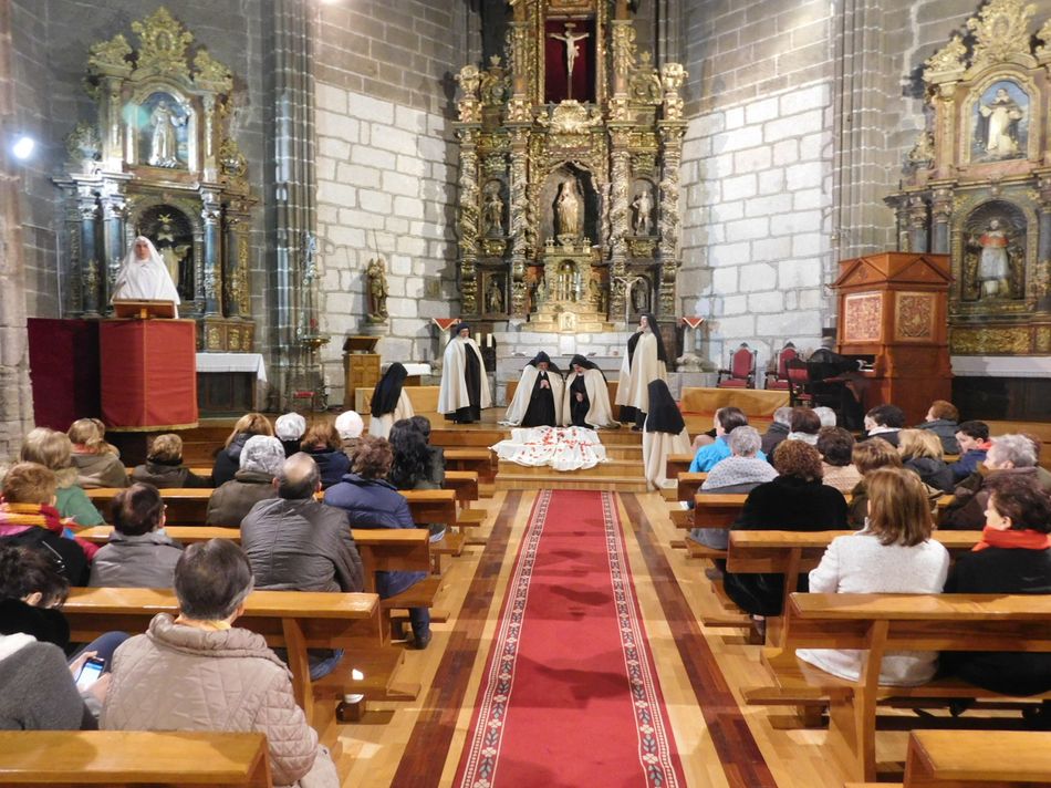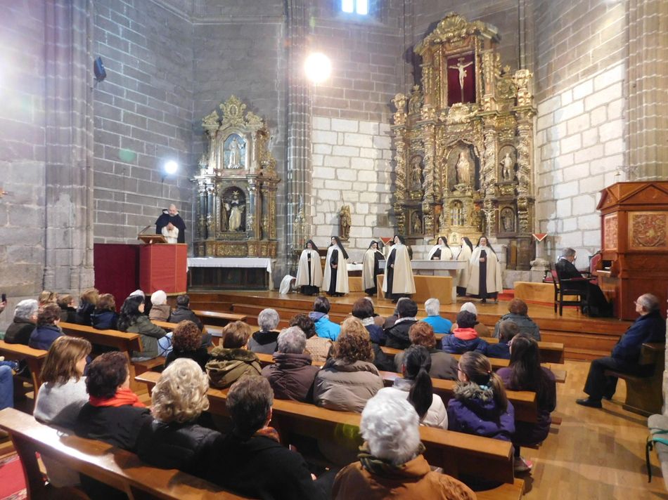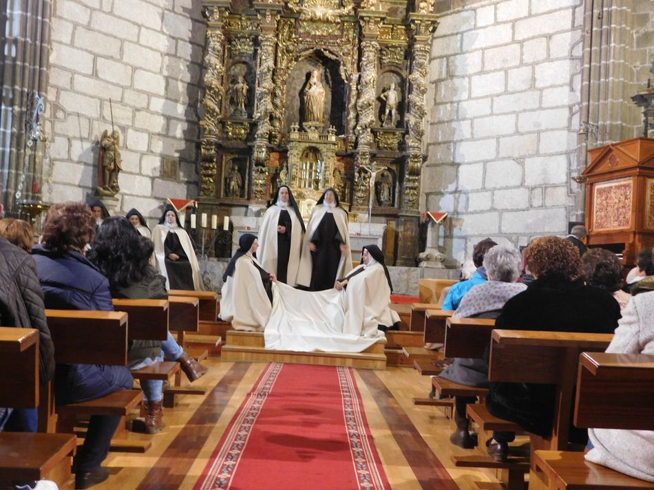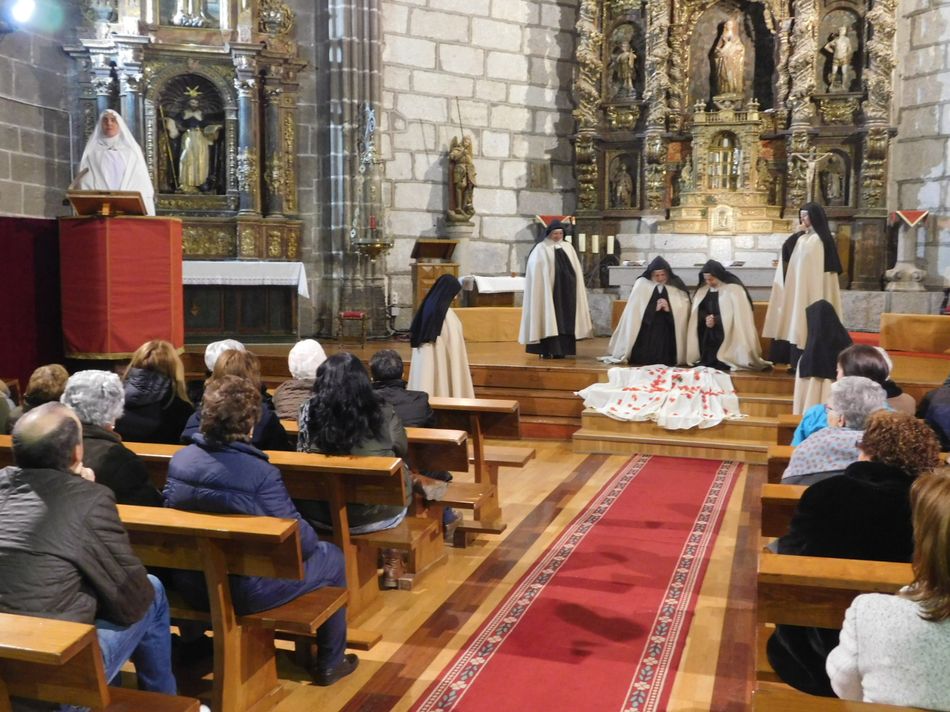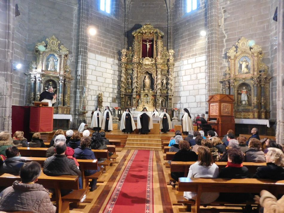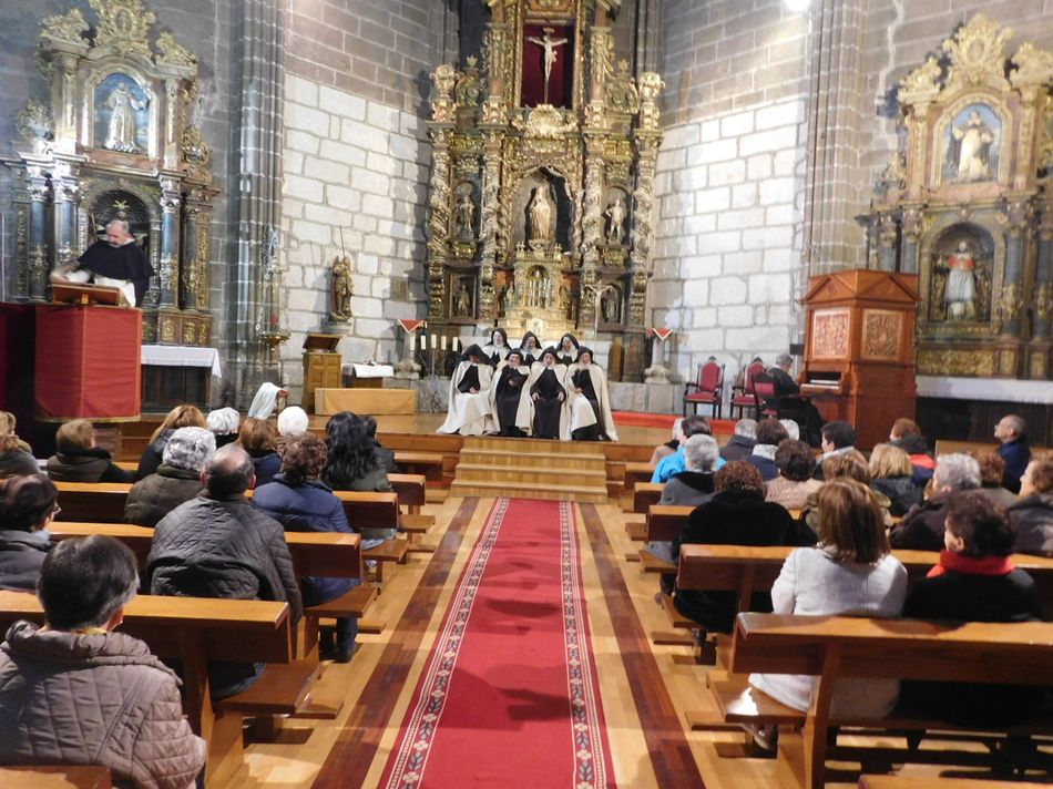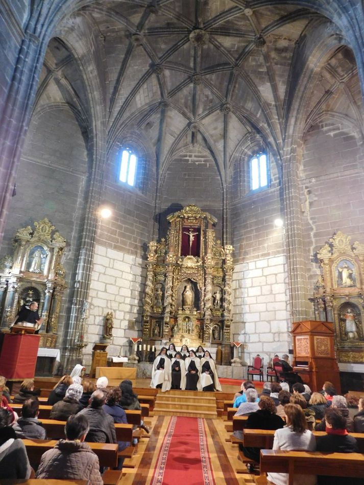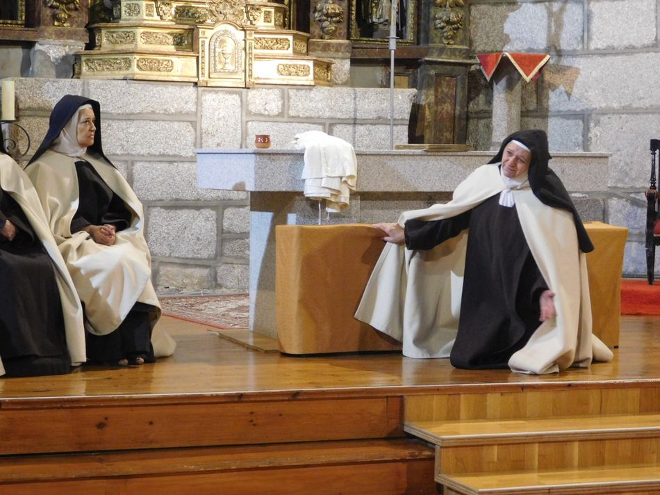 La actual iglesia parroquial de Alaraz, tiene la advocación de Nuestra Señora de las Nieves que data en su origen del siglo XV, fecha que también se corresponde con la de la imagen de la patrona que aparece en el bello retablo octogonal en piedra del Altar Mayor junto a un nada desdeñable san Miguel, de la misma época, guardián a ultranza de la fe. Allí asistieron los habitantes de este pueblo a una obra, que alternando seriedad y simpatía, ironía e ingenuidad, valentía y humildad, nos sabe poner con total rigurosidad en el contexto histórico, personal y artístico de la carmelita. Guiño, sin duda, particular para este público que no sin sonrisas e incluso alguna carcajada, se situó en tierras de Alba, a cuyo señorío también perteneció su localidad en la época a la que asistían, mientras oían hablar de los sueños infantiles de la niña Teresa frente a los moros, así como del castillo inexpugnable que era la sociedad varonil del XVI. Y una preciosa escultura de la santa, que guarda la iglesia, parecía dar fe de todo ello.