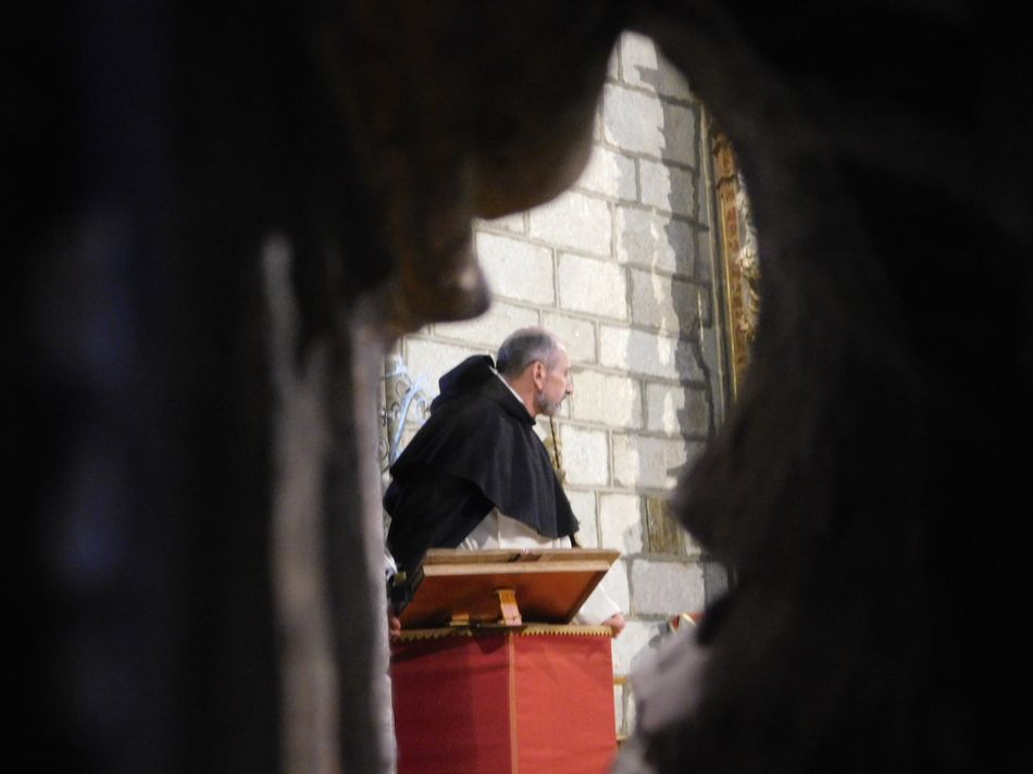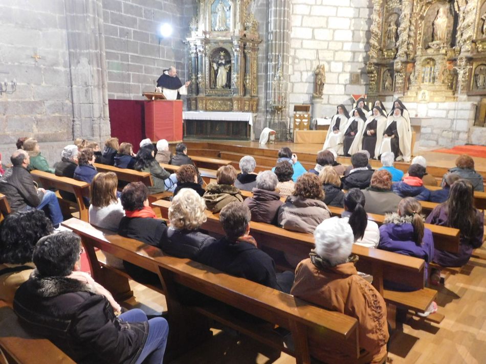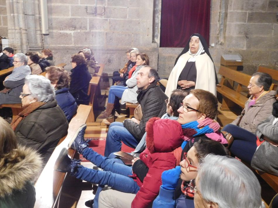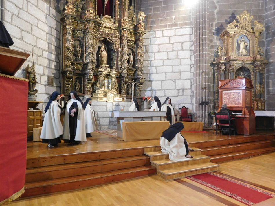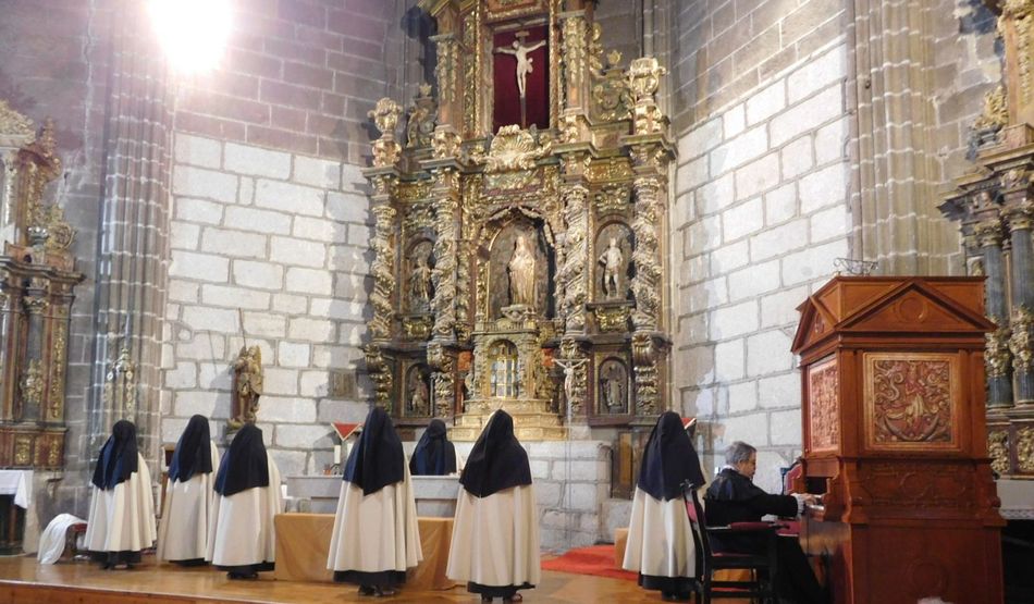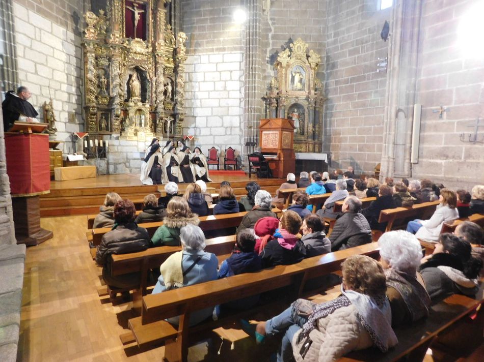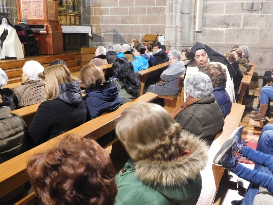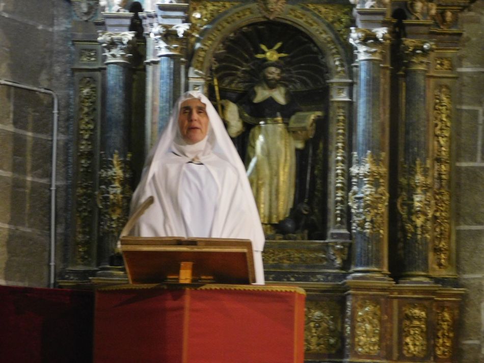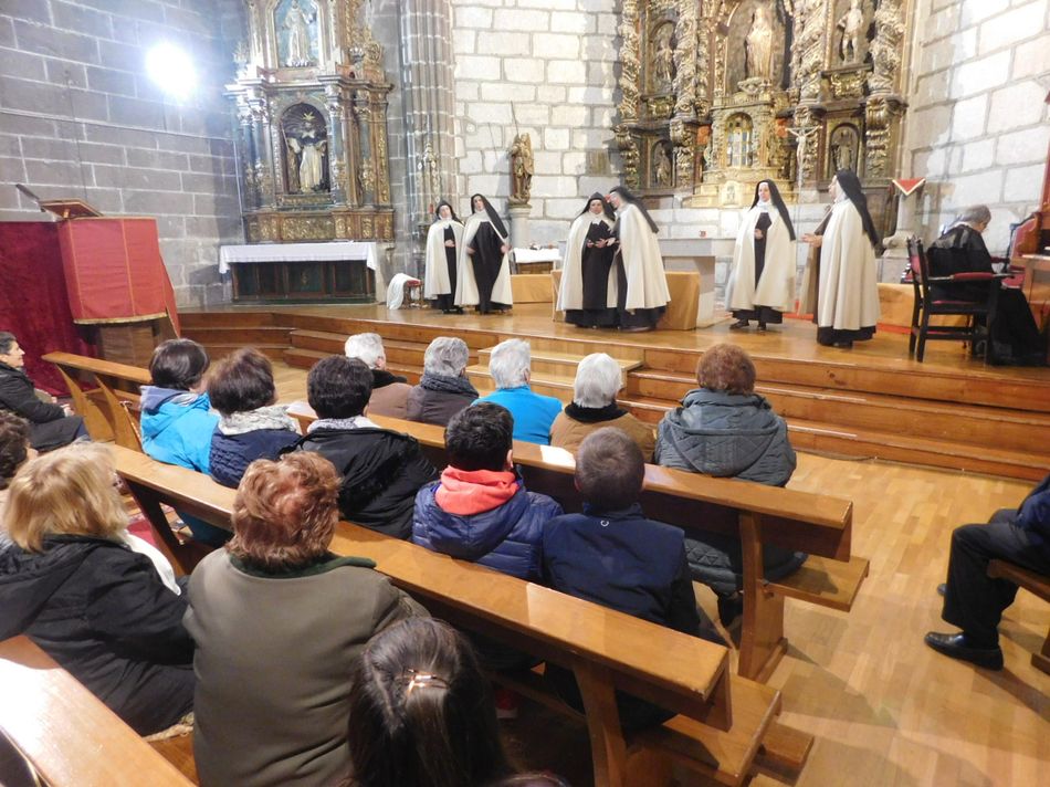 La actual iglesia parroquial de Alaraz, tiene la advocación de Nuestra Señora de las Nieves que data en su origen del siglo XV, fecha que también se corresponde con la de la imagen de la patrona que aparece en el bello retablo octogonal en piedra del Altar Mayor junto a un nada desdeñable san Miguel, de la misma época, guardián a ultranza de la fe. Allí asistieron los habitantes de este pueblo a una obra, que alternando seriedad y simpatía, ironía e ingenuidad, valentía y humildad, nos sabe poner con total rigurosidad en el contexto histórico, personal y artístico de la carmelita. Guiño, sin duda, particular para este público que no sin sonrisas e incluso alguna carcajada, se situó en tierras de Alba, a cuyo señorío también perteneció su localidad en la época a la que asistían, mientras oían hablar de los sueños infantiles de la niña Teresa frente a los moros, así como del castillo inexpugnable que era la sociedad varonil del XVI. Y una preciosa escultura de la santa, que guarda la iglesia, parecía dar fe de todo ello.