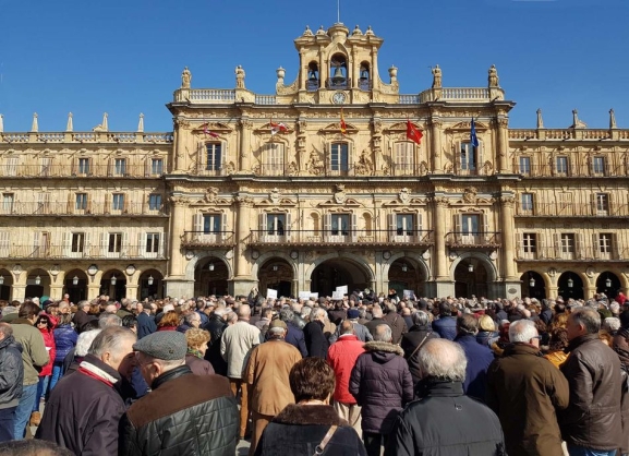 El pasado día jueves 22, nos reunimos unos cuantos miles de mayores en nuestra Plaza Mayor de Salamanca, no para tomar el sol, sino para reivindicar una pensión que nos permita vivir con dignidad.