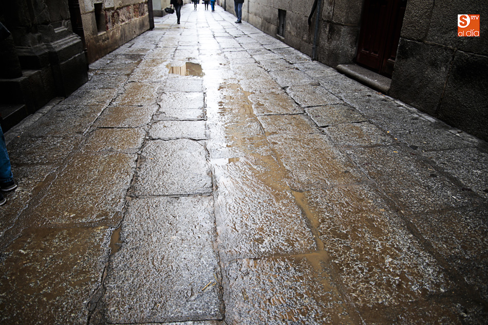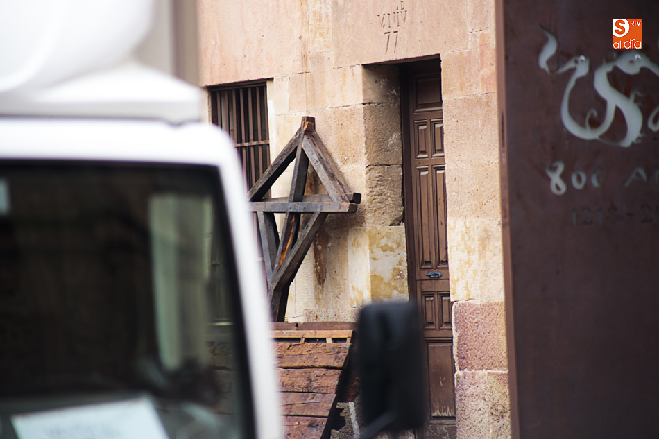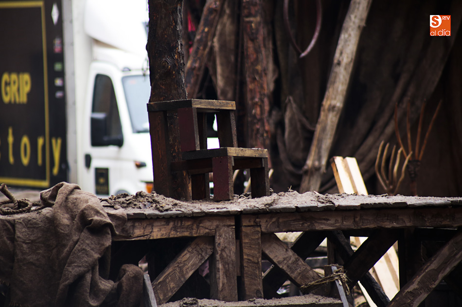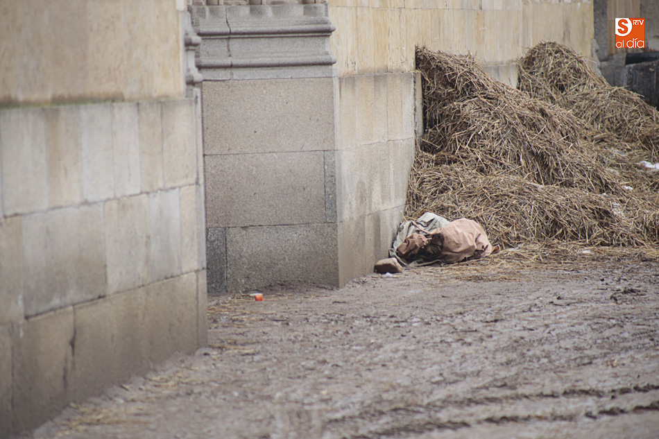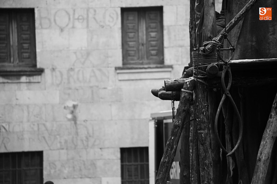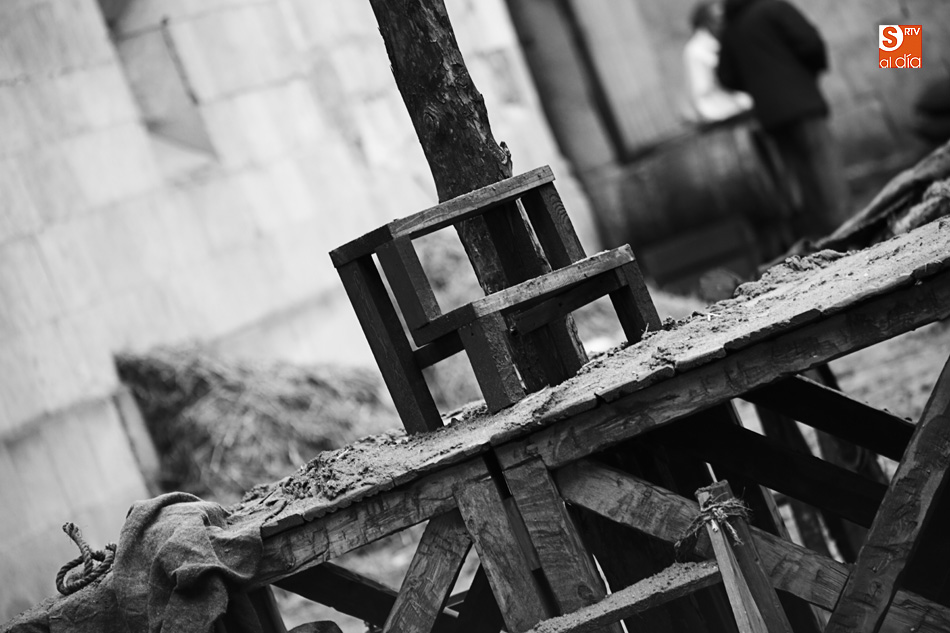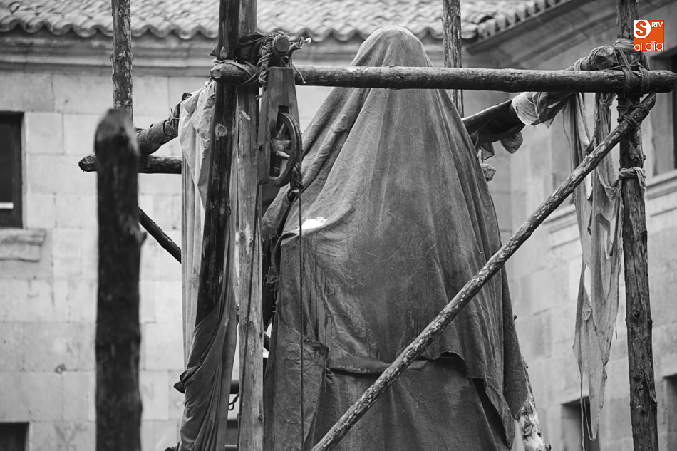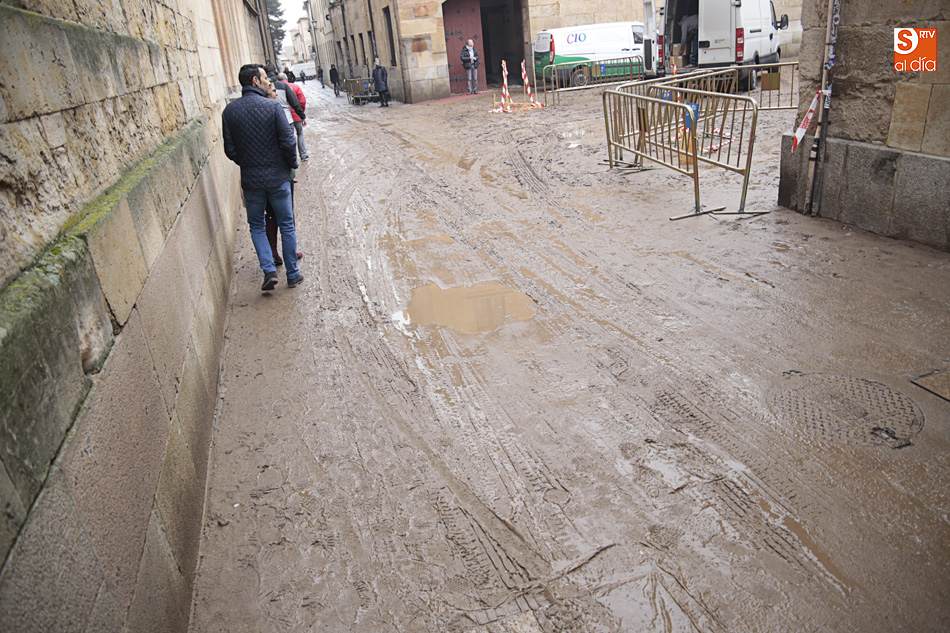 El Patio de Escuelas se ha transformado con motivo del rodaje de algunas escenas de la película para televisión sobre Fray Luis de León, que coincidirá con el VIII centenario de la que es la universidad más antigua de España. Además, la lluvia ha transformado este espacio en un barrizal, puesto que el suelo estaba cubierto de tierrra,