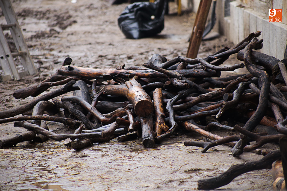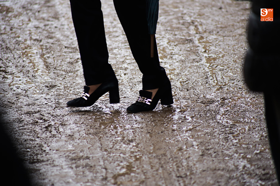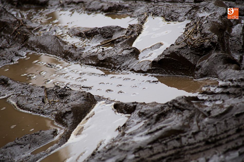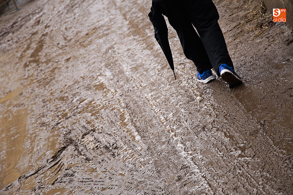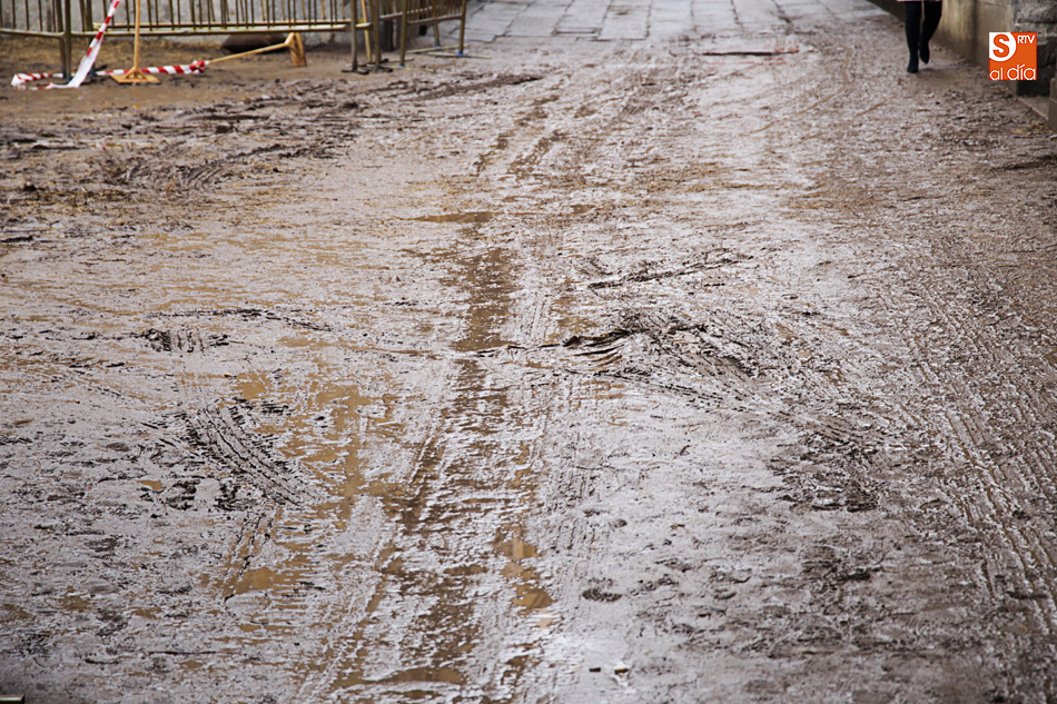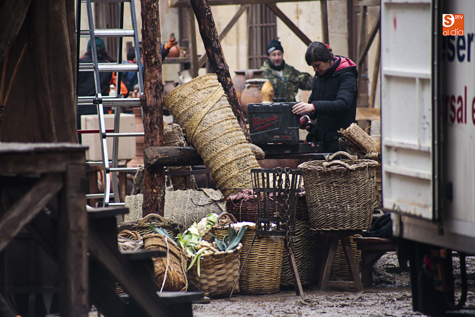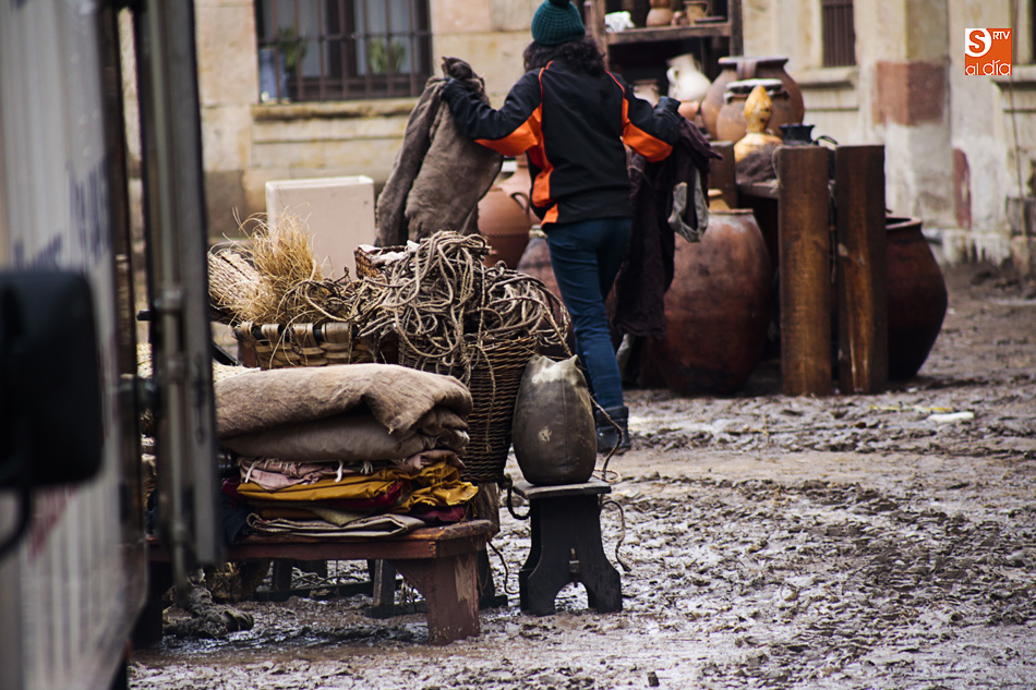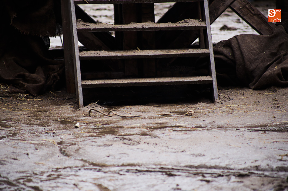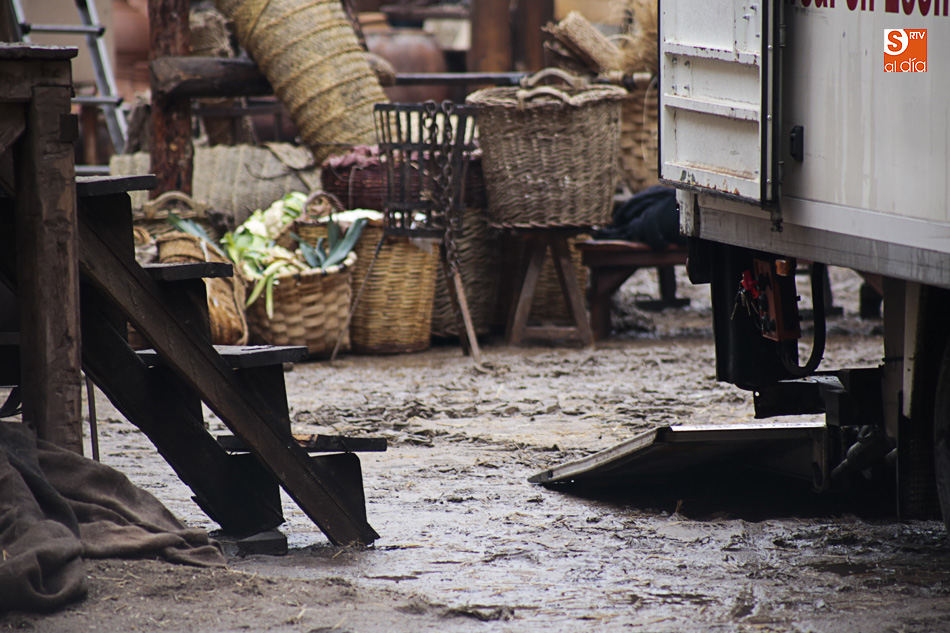 La lluvia ha convertido este espacio en un barrizal, ya que el suelo se había cubierto con arena para simular su imagen en el siglo XVI