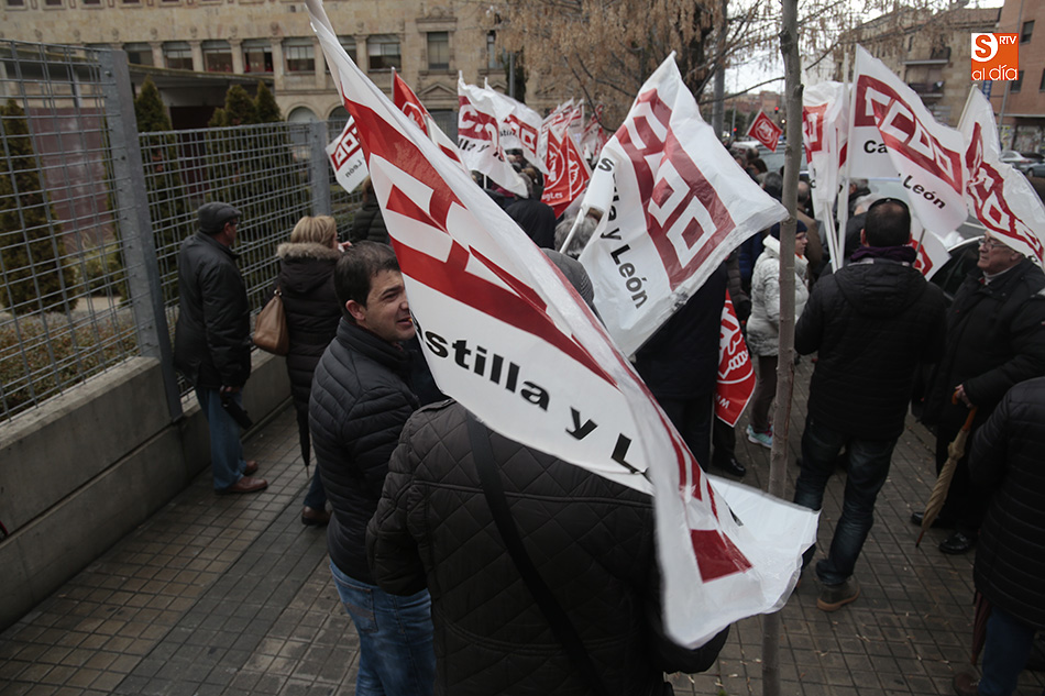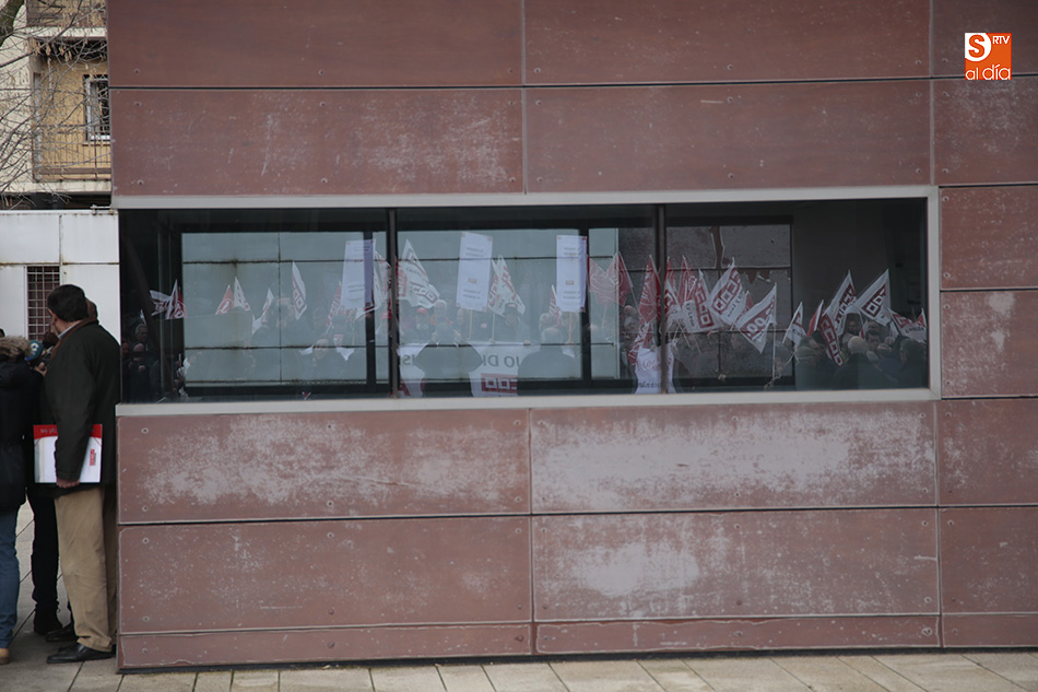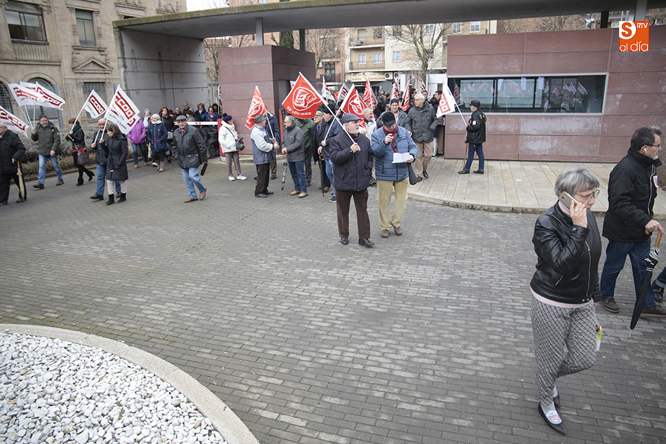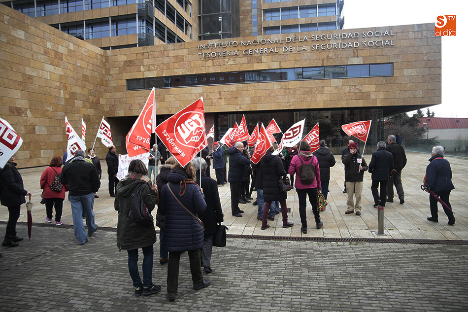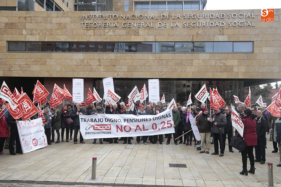 Varios centenares, convocados por CCOO y UGT, se concentran a las puertas de la Seguridad Social "por unas pensiones dignas"