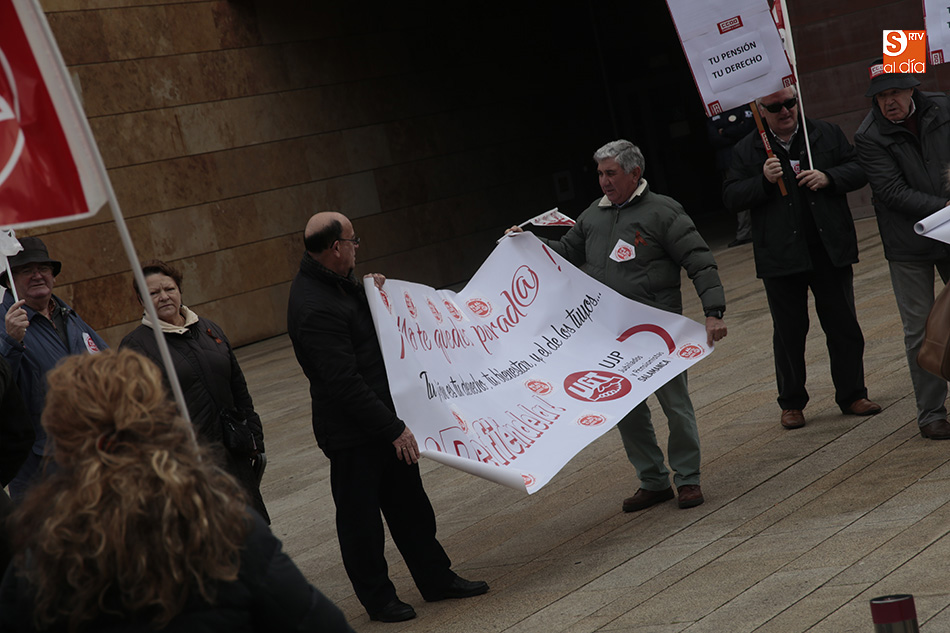 Dos semanas después de la manifestación y el corte de la Gran Vía realizada por los pensionistas convocados por UGT y CCOO, hoy se han concentrado a las puertas de la sede de la Seguridad Social, en el paseo de Canalejas. Este colectivo ha vuelto a salir a la calle para exigir al Gobierno de Mariano Rajoy "pensiones dignas", mostrar su rechazo a la subida del 0,25% y por la continuidad del sistema público de pensiones. Medidas de protesta, en más de 40 ciudades españolas, que continuarán el próximo 17 de marzo con una gran movilización de ambos sindicatos.
