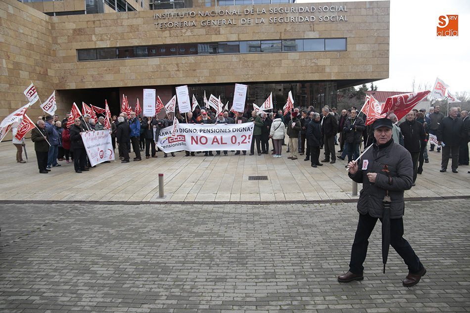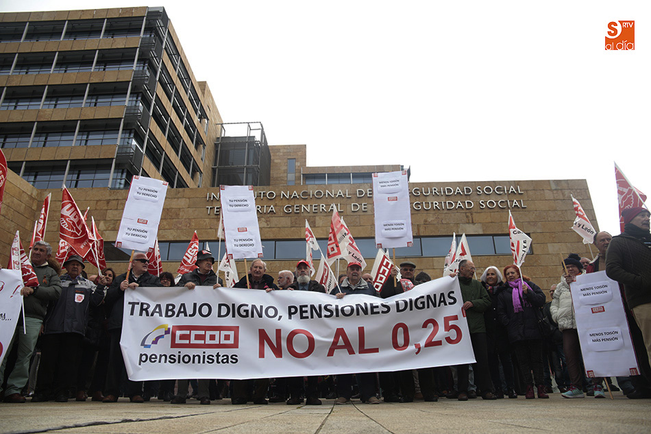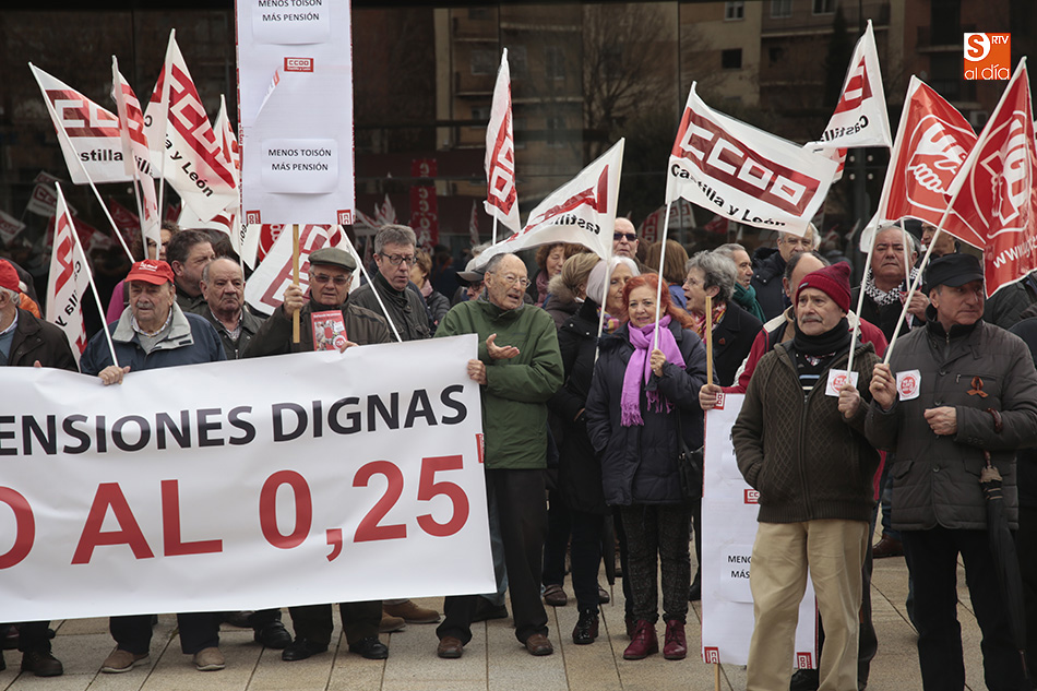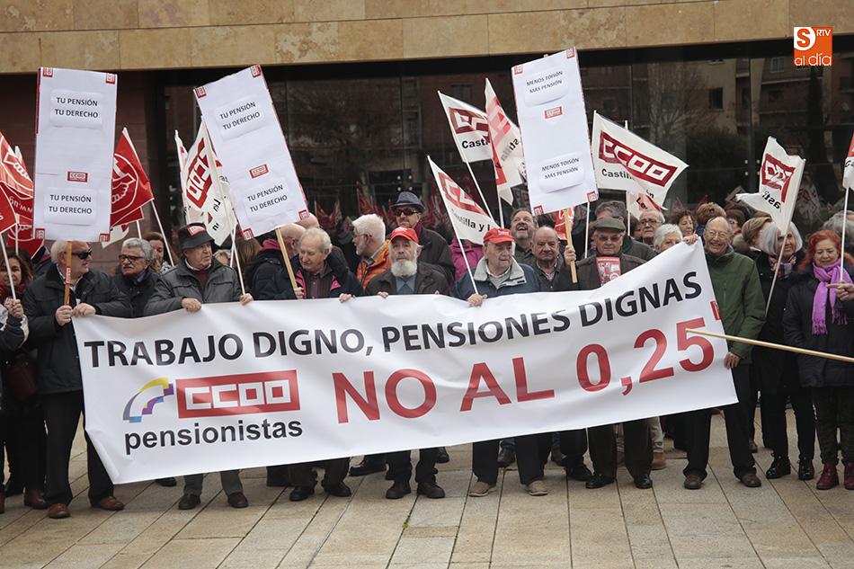 'Por un trabajo digno, pensiones dignas y no al 0,25%' es el lema portado en las pancartas por varios centenares de pensionistas. Tomás García, de CCOO, ha recordado que estas movilizaciones no son las primeras de este colectivo, que ya salió a la calle en septiembre del pasado año, culminando con una gran manifestación en Madrid en octubre. García ha rechazado que los pensionistas se hayan convertido con sus reivindicaciones en un "arma política", aunque reconoce que ahora su misión está en la calle pidiendo "algo que consideramos justo".