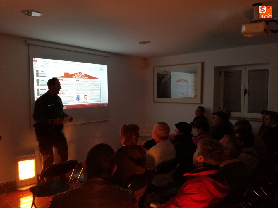Impartida por el guardia civil José Ignacio Hernández, los vecinos permanecieron atentos para conocer algunas técnicas para evitar estafas, robos, hurtos, engaños, etc., así como otros planes de seguridad como el Plan Turismo Seguro o el 'Plan ante sustracciones agrícolas y ganaderas'.