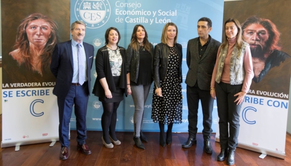 La consejera de Familia e Igualdad de Oportunidades, Alicia García, el secretario general de CC.OO. en Castilla y León, Vicente Andrés, la secretaria de Igualdad y Juventud de UGT en Castilla y León, Ana Isabel Martín, y Juan Saborido, miembro de la Junta directiva de CECALE, han presentado la campaña 'La verdadera evolución se escribe con C' y han inaugurado la jornada 'Conciliación y corresponsabilidad', con expertos y empresas con experiencia en la materia para concienciar a la sociedad y al tejido empresarial de la importancia de lograr una igualdad efectiva entre hombres y mujeres en el mercado laboral.