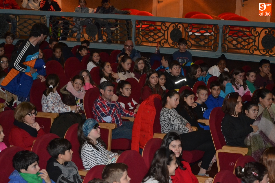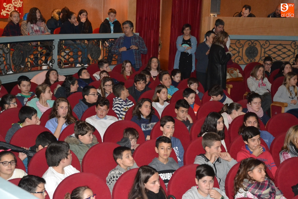 Alumnos del último ciclo de Primaria y del primer ciclo de la ESO de los centros educativos de Ciudad Rodrigo se acercaron en la mañana del viernes hasta el Teatro Nuevo Fernando Arrabal para disfrutar de una nueva sesión de la Escuela Municipal de Espectadores, que esta vez tuvo un componente especial.