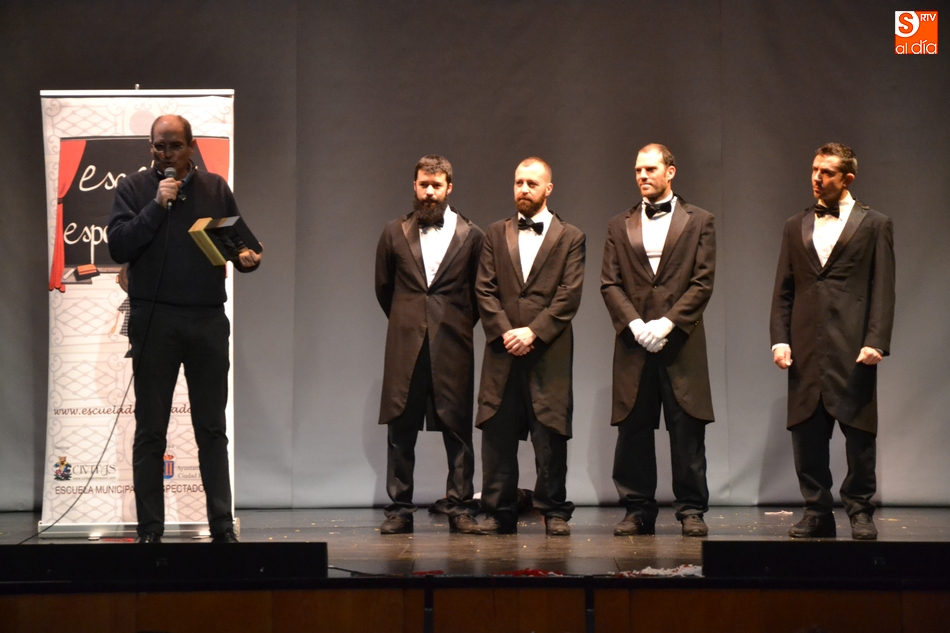 Precisamente, aprovechando esta visita de Spasmo y que se trataba de una función para niños, la Asociación de Amigos del Teatro les hizo entrega del galardón (habitualmente estos premios se entregan en la siguiente Feria). Concretamente, las encargadas de darles el premio físico fueron dos jóvenes integrantes de la Asociación que habían estado entre el público presenciando la función. A esta entrega también asistieron el director de la Feria de Teatro, Manuel Jesús González, el alcalde Juan Tomás Muñoz y el primer teniente de alcalde Domingo Benito.